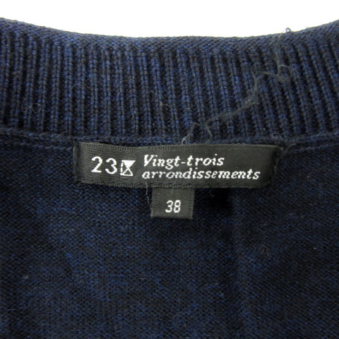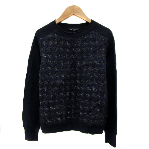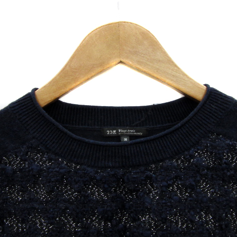 23区 オンワード樫山 ニット カットソー 長袖 ラウンドネック 総柄 ウール 38 紺 ネイビー シルバー /YS23 レディース