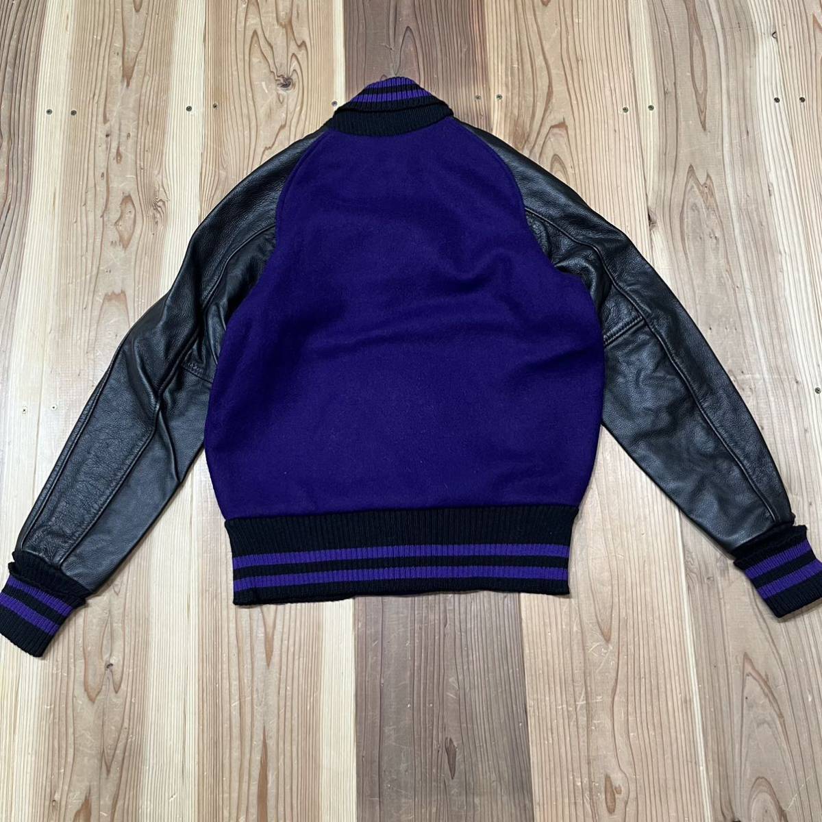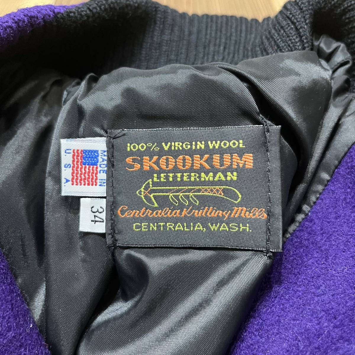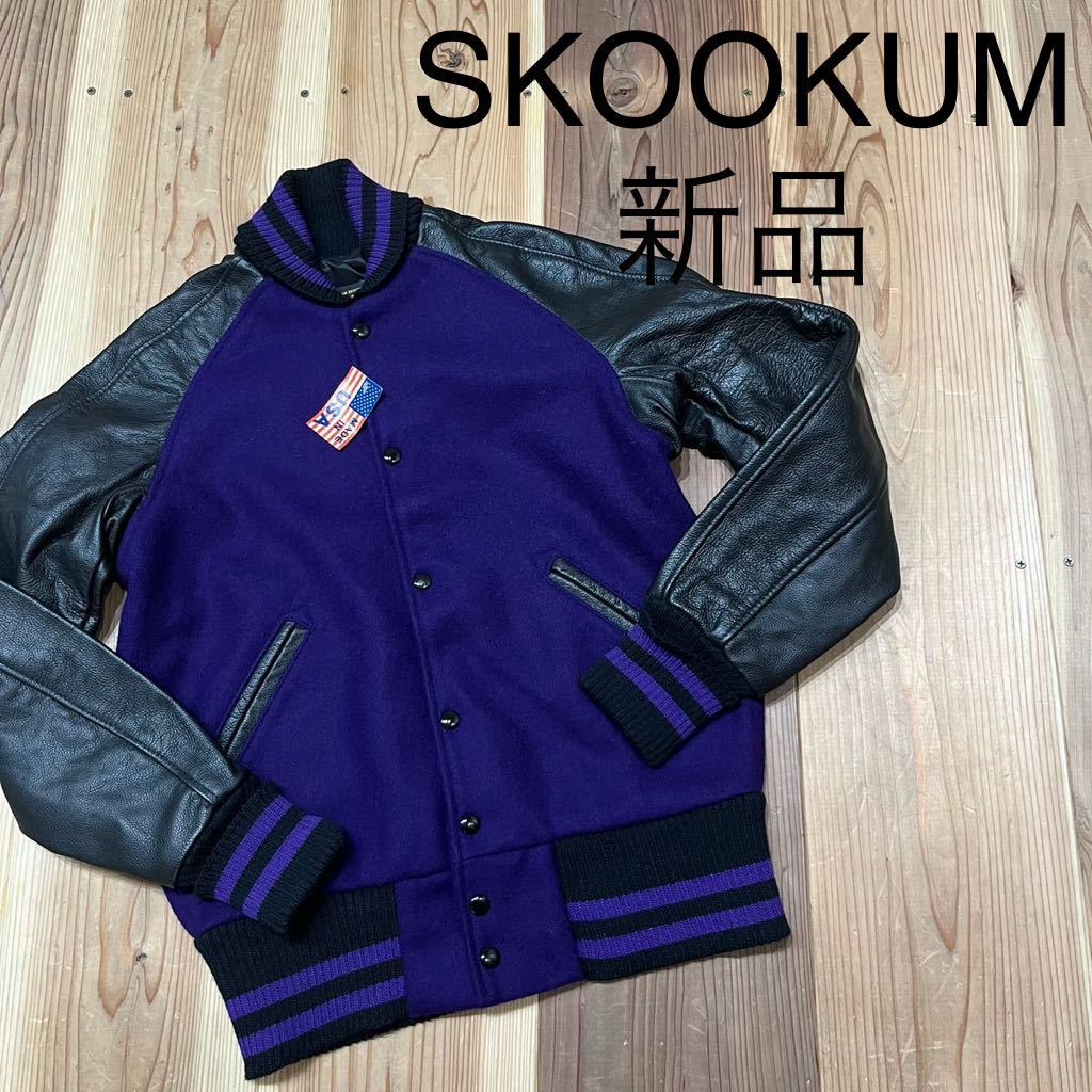 新品 SKOOKUM スクーカム 定価63800 アワードジャケット スタジャン 袖革 レザー USA製 ウール パープル ブラック サイズ34 S相当 玉mc2382