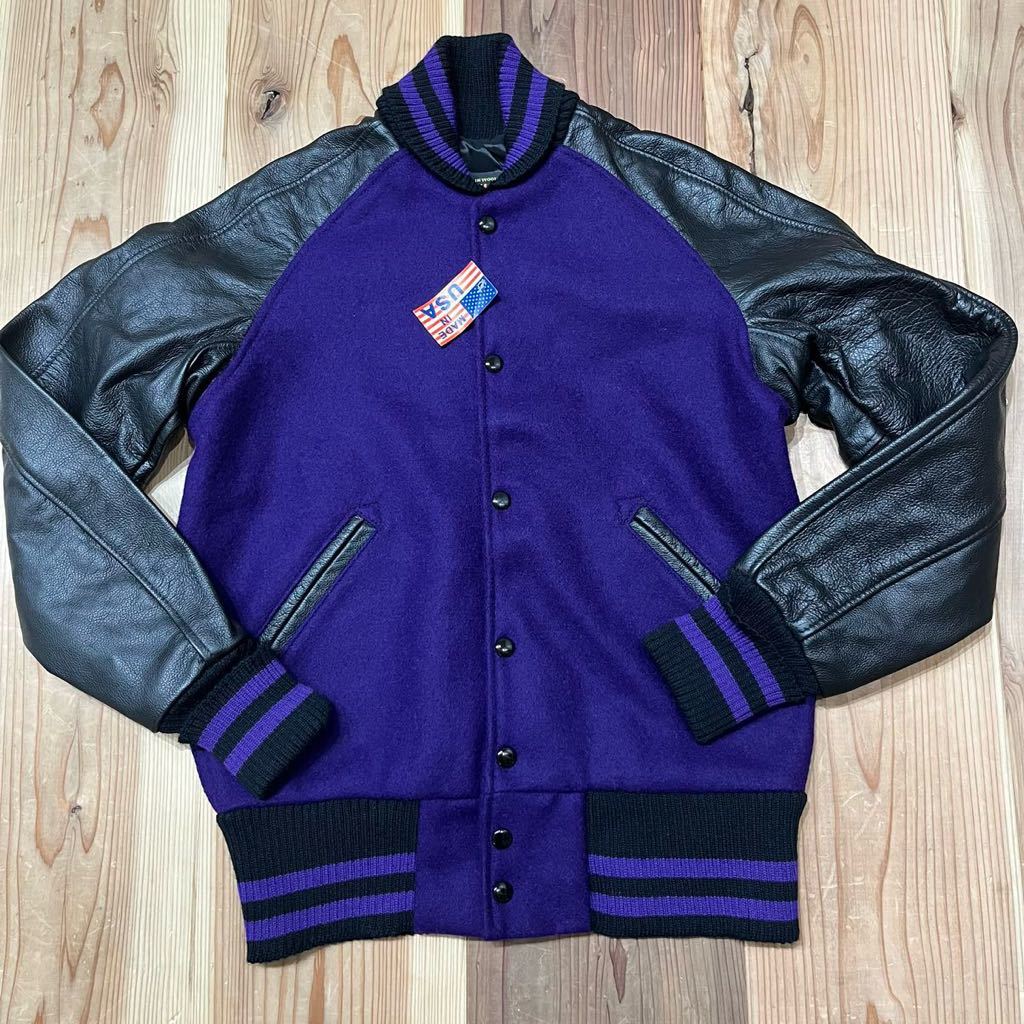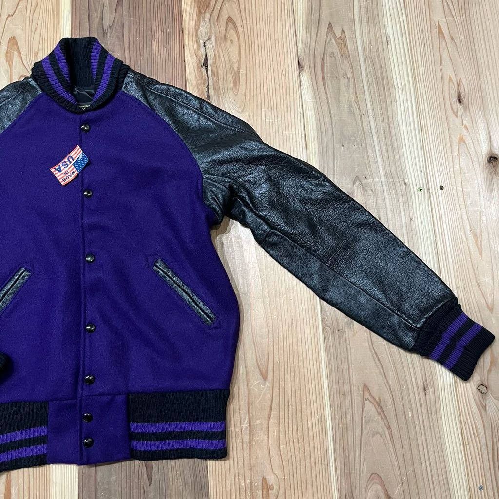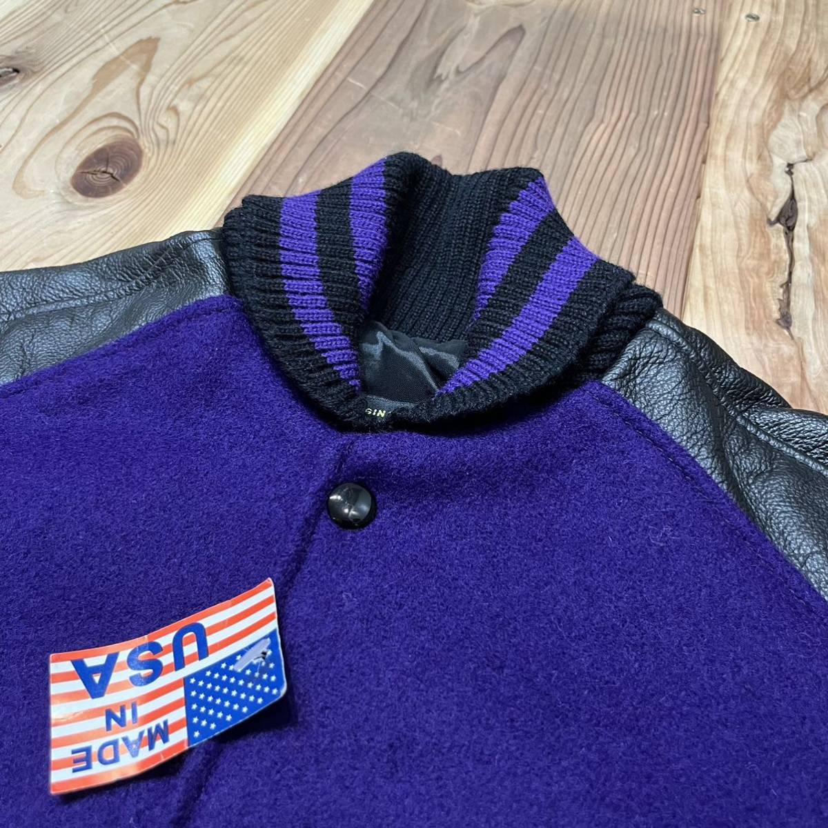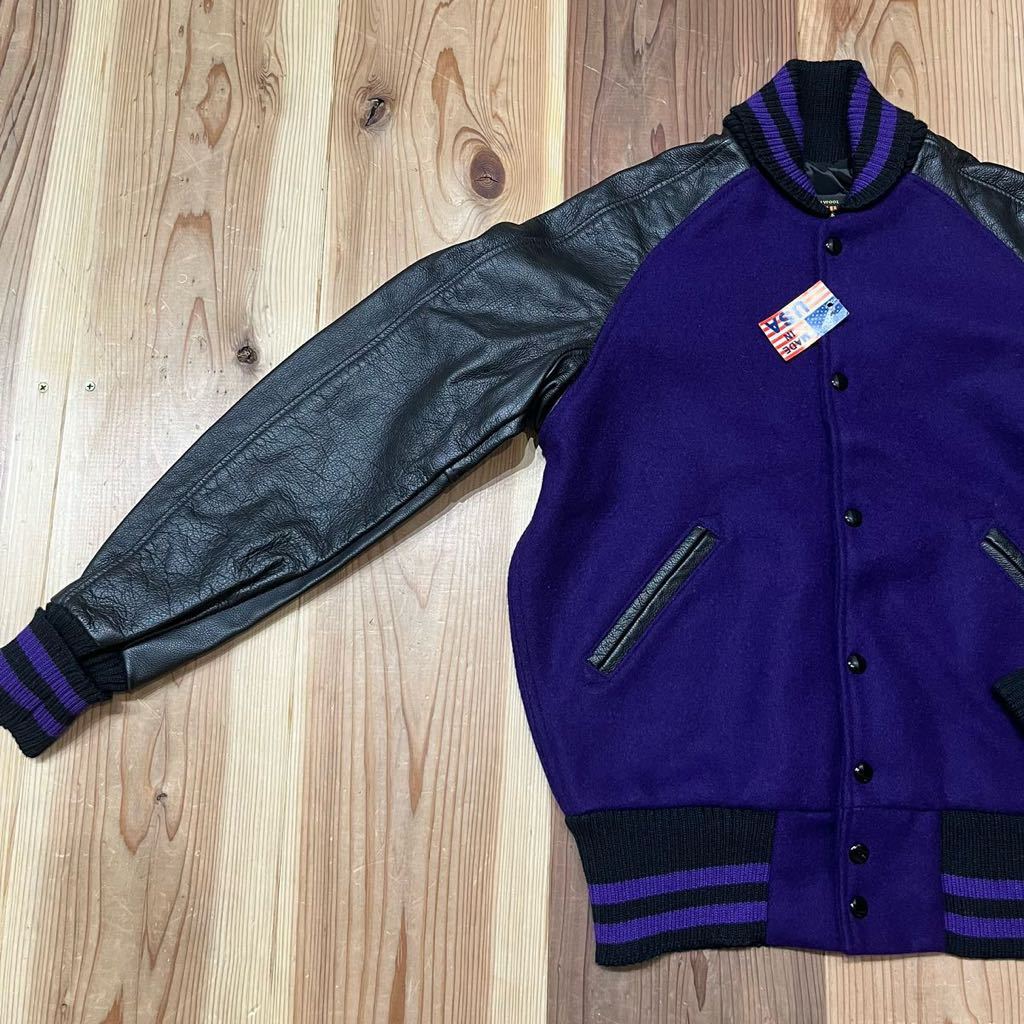 新品 SKOOKUM スクーカム 定価63800 アワードジャケット スタジャン 袖革 レザー USA製 ウール パープル ブラック サイズ34 S相当 玉mc2382