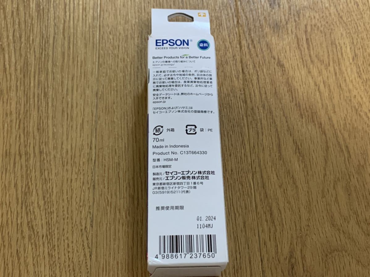 エプソン純正インクカートリッジHSM-M マゼンタとなります。新品、未使用、未開封となります。購入したものの使用しませんでした。空調システムのある場所で基本保管しておりました。推奨使用期限が2024/1となります。ただちに使用できなくなるわけではありませんがお早目のご利用をおすすめいたします。カラリオプリンターEP-M570T、EW-M5071FT、EW-M660FTなどでご利用いただけます。