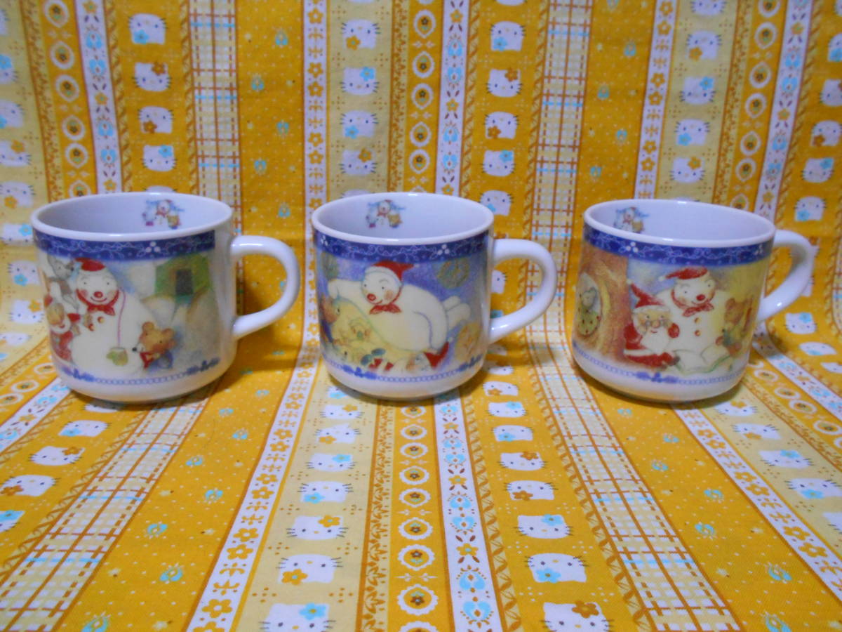 ♪カトウシンジ美品クリスマス陶器製マグカップ3種セットサンタクロースとスノーマン