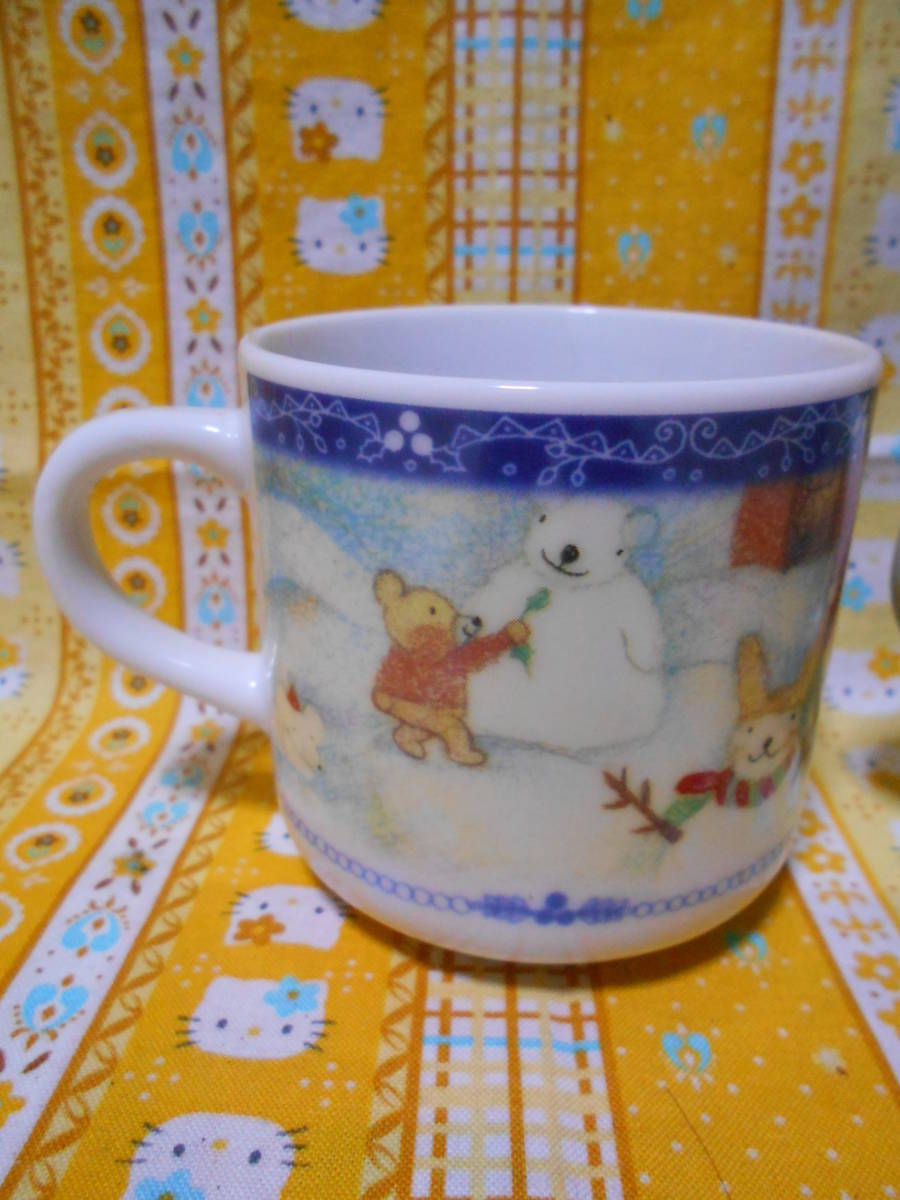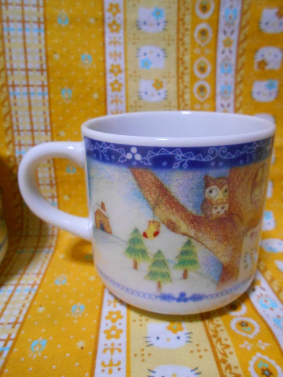 マグカップが上部の直径7.3cm、高さ7.3cmほどの大きさです。とてもきれいで楽しい絵柄のお品です。