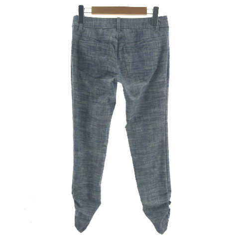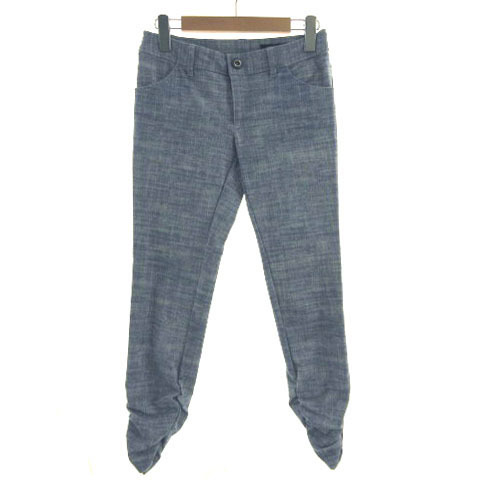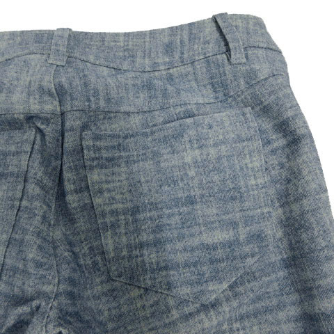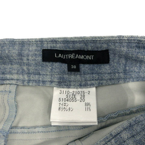 ロートレアモン LAUTREAMONT パンツ スリム 裾シャーリング ストレッチ 日本製 ブルー 青 ホワイト 白 38 レディース