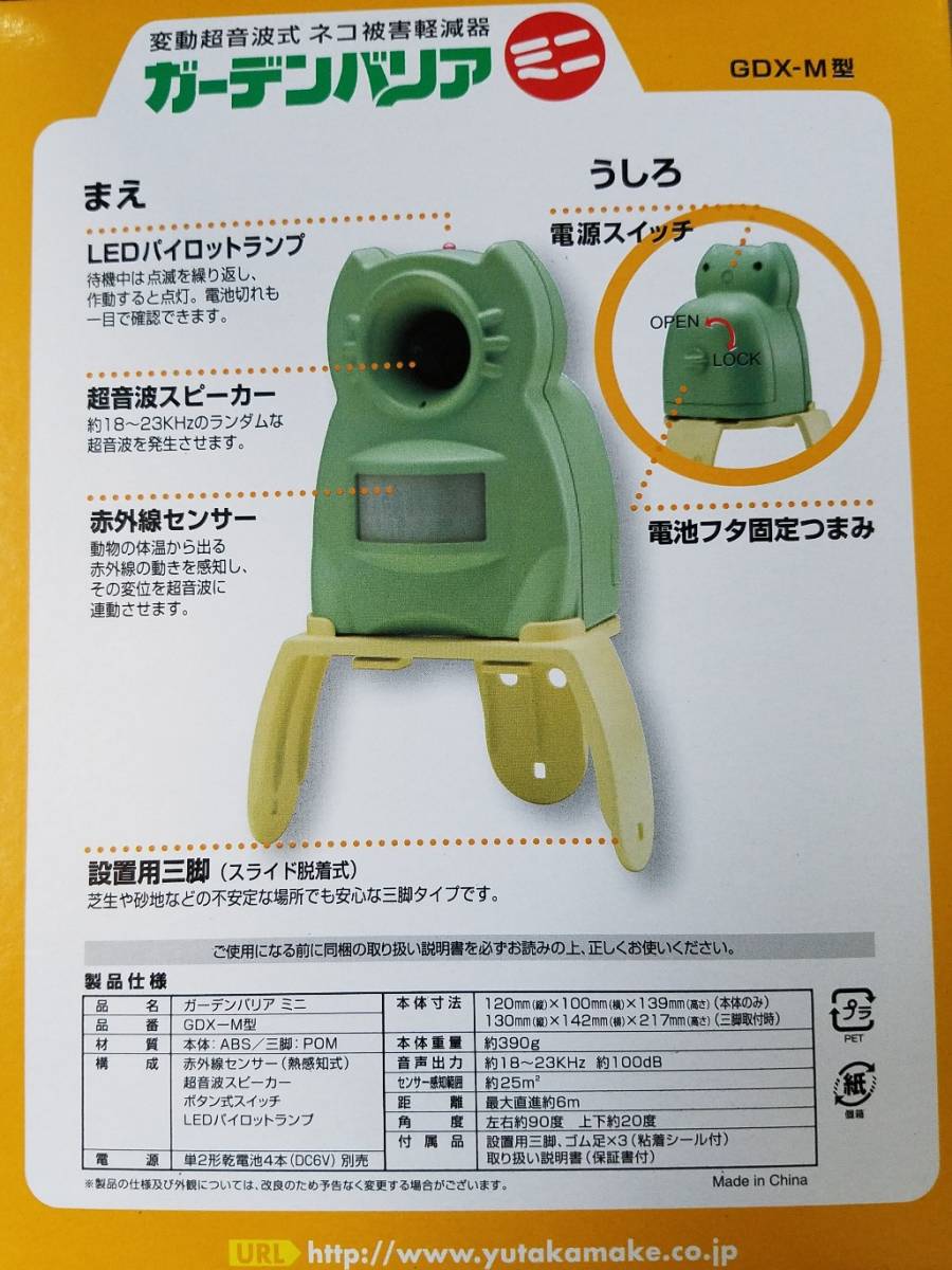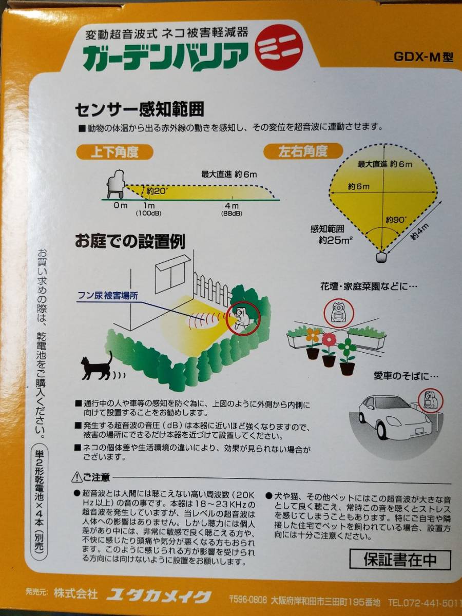 1年間メーカー保証有!人、環境、ネコに優しい 変動超音波進入軽減器 ユタカメイク ガーデンバリアミニ GDX‐M型 ◇