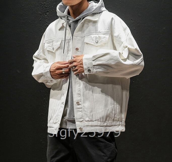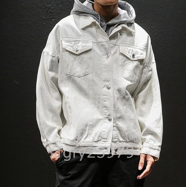 C621☆デニムジャケット メンズ Gジャン ジャケット ジージャン デニム ジャンパー ブルゾン ゆったり カジュアル 白色