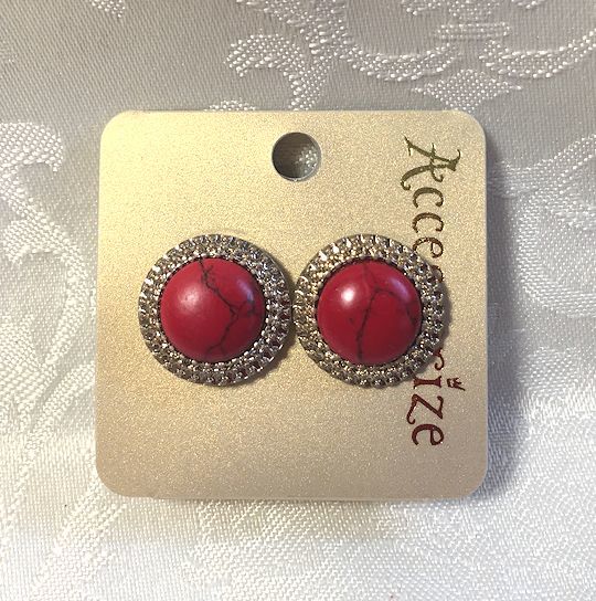 Accessorize アクセサライズ★レッドストーン調レザー・ソリッドサークル×ゴールドチェーン★ピアス★未使用