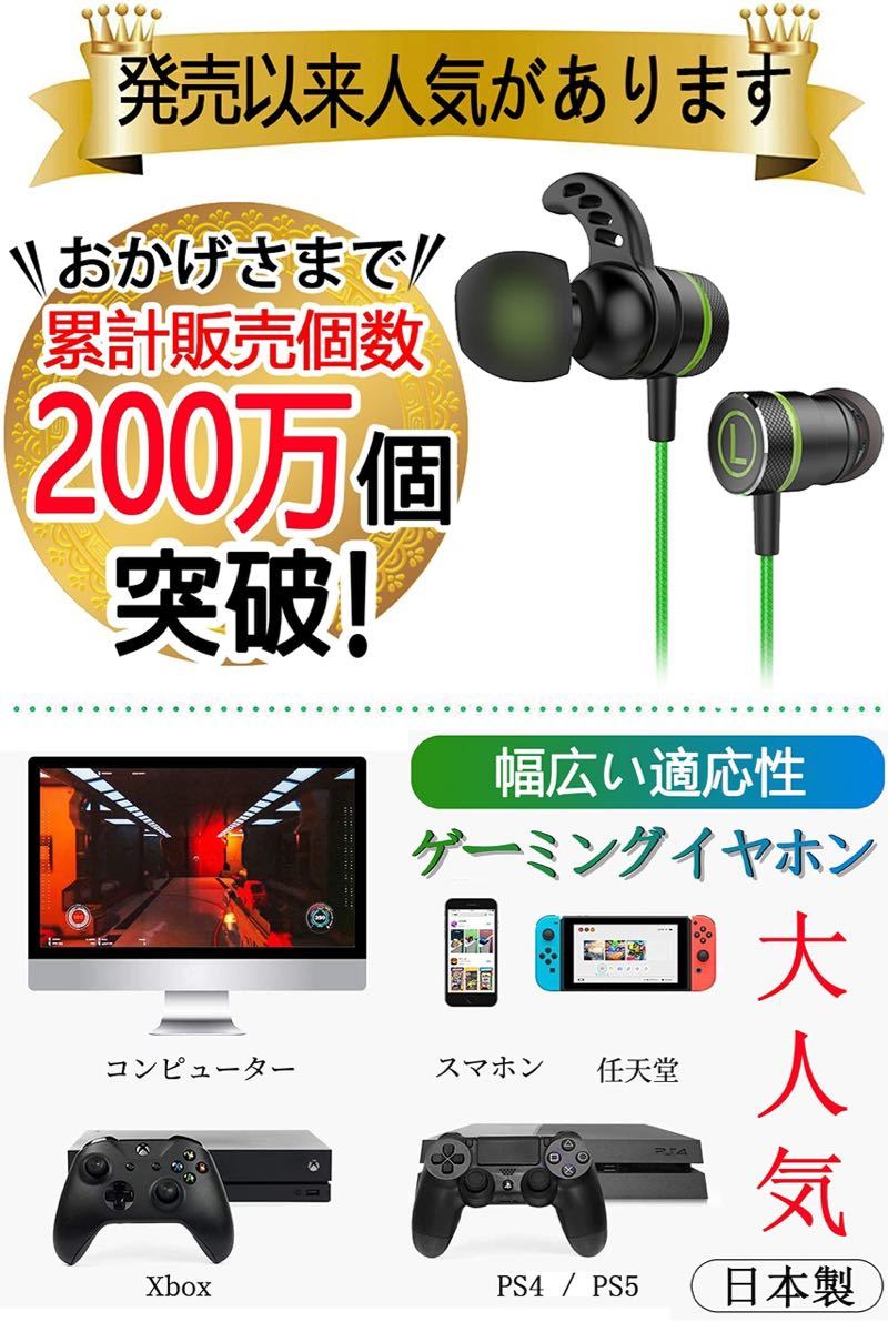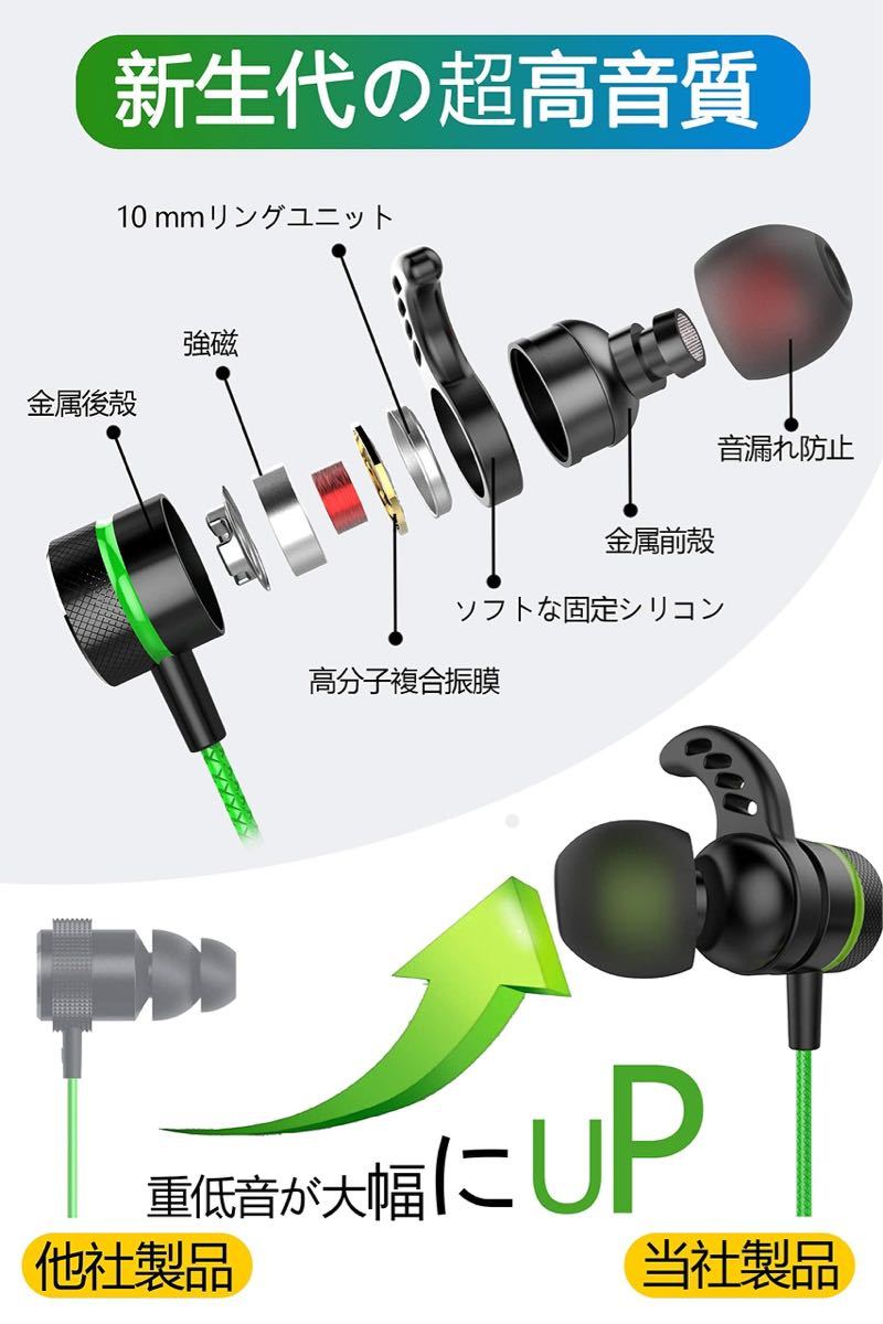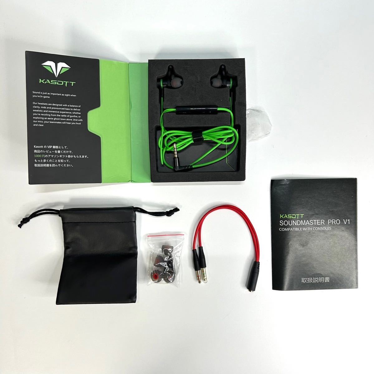 Kasott Soundmaster Pro V1 マイク付きゲーミングイヤホン【マイクミュート機能 】低音重視 イヤフォンヘッドホン カナル型 Nintendo Switch Xbox有線 スマホ 携帯 ゲーム 重低音 PS4/PS5 / PC PUBG 荒野行動 ZOOM Skype 対応 テレワーク ビデオ会議 在宅勤務 (【1】グリーン(Green))