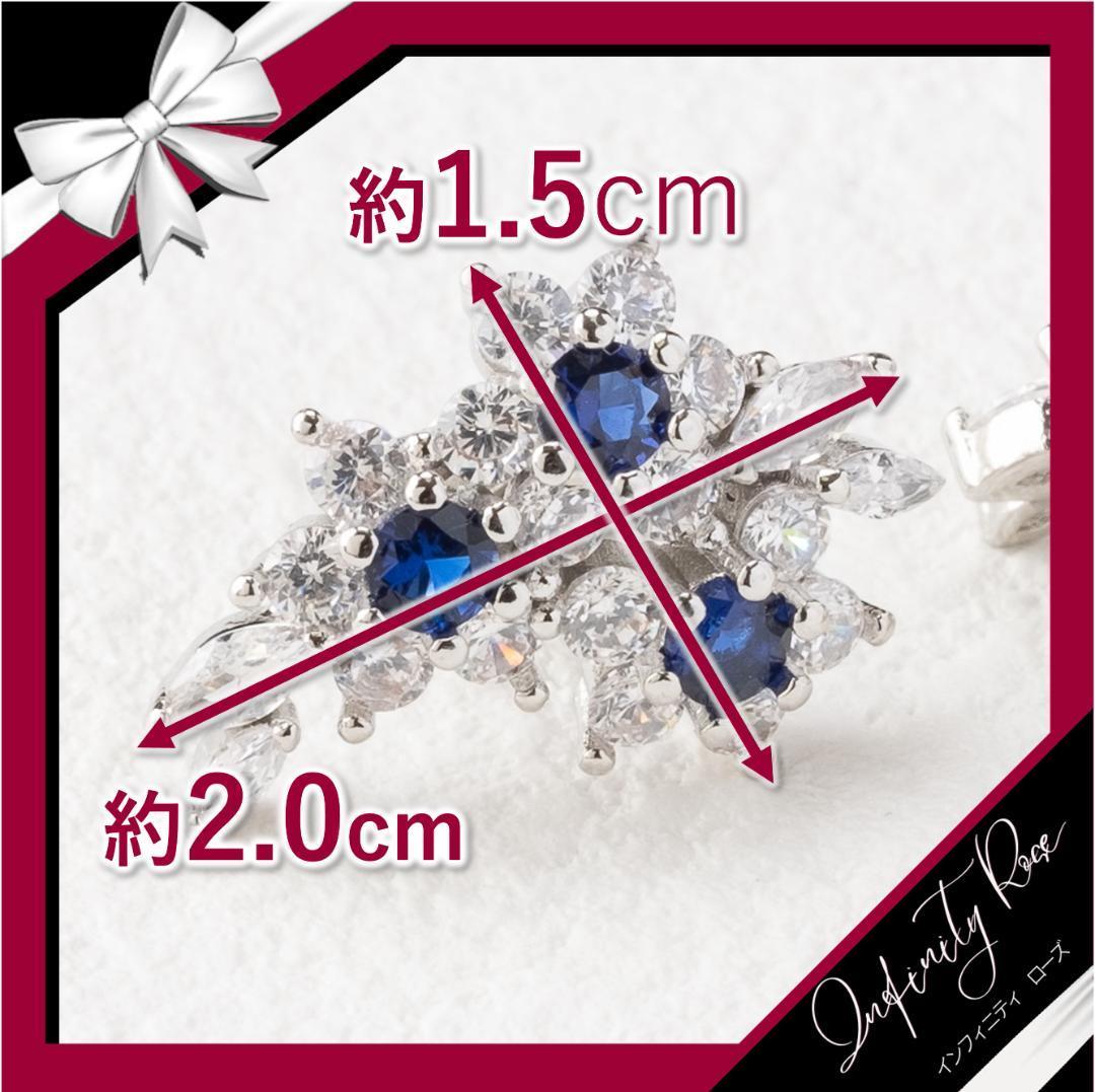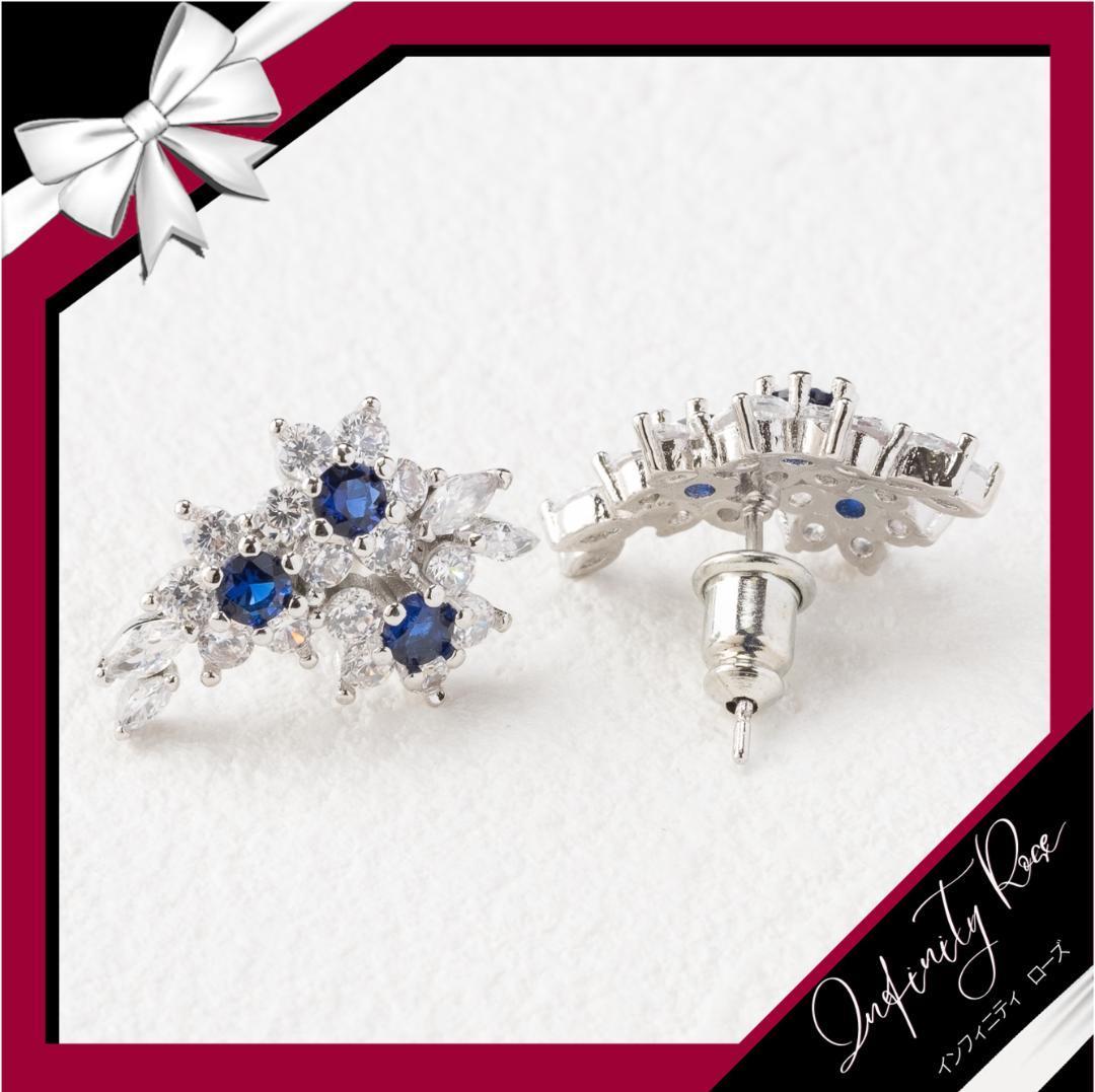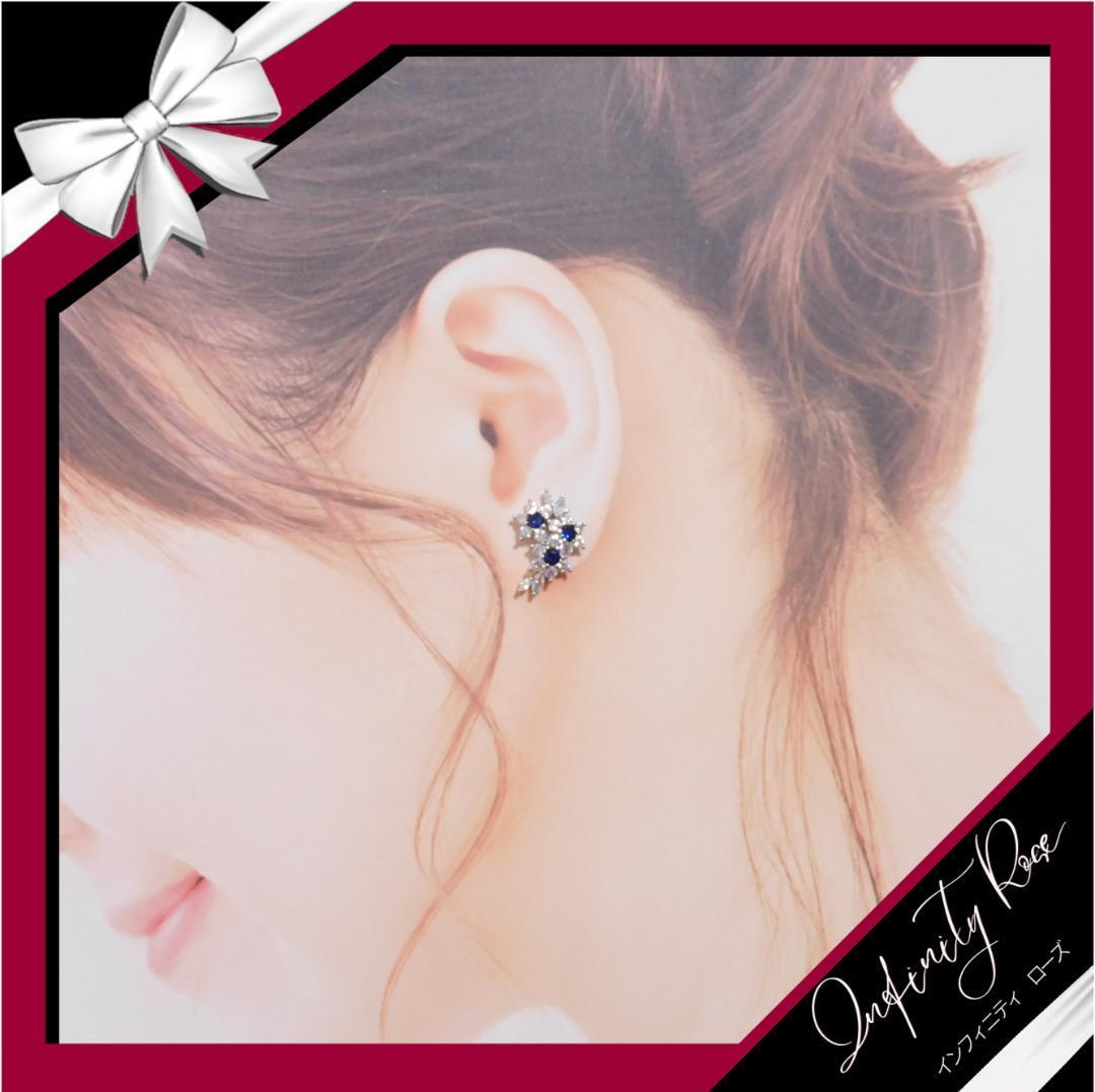 (5032)ダークブルークリスタルピアス 3つの可憐なお花 高価爪留め仕様 スワロフスキー製クリスタル使用