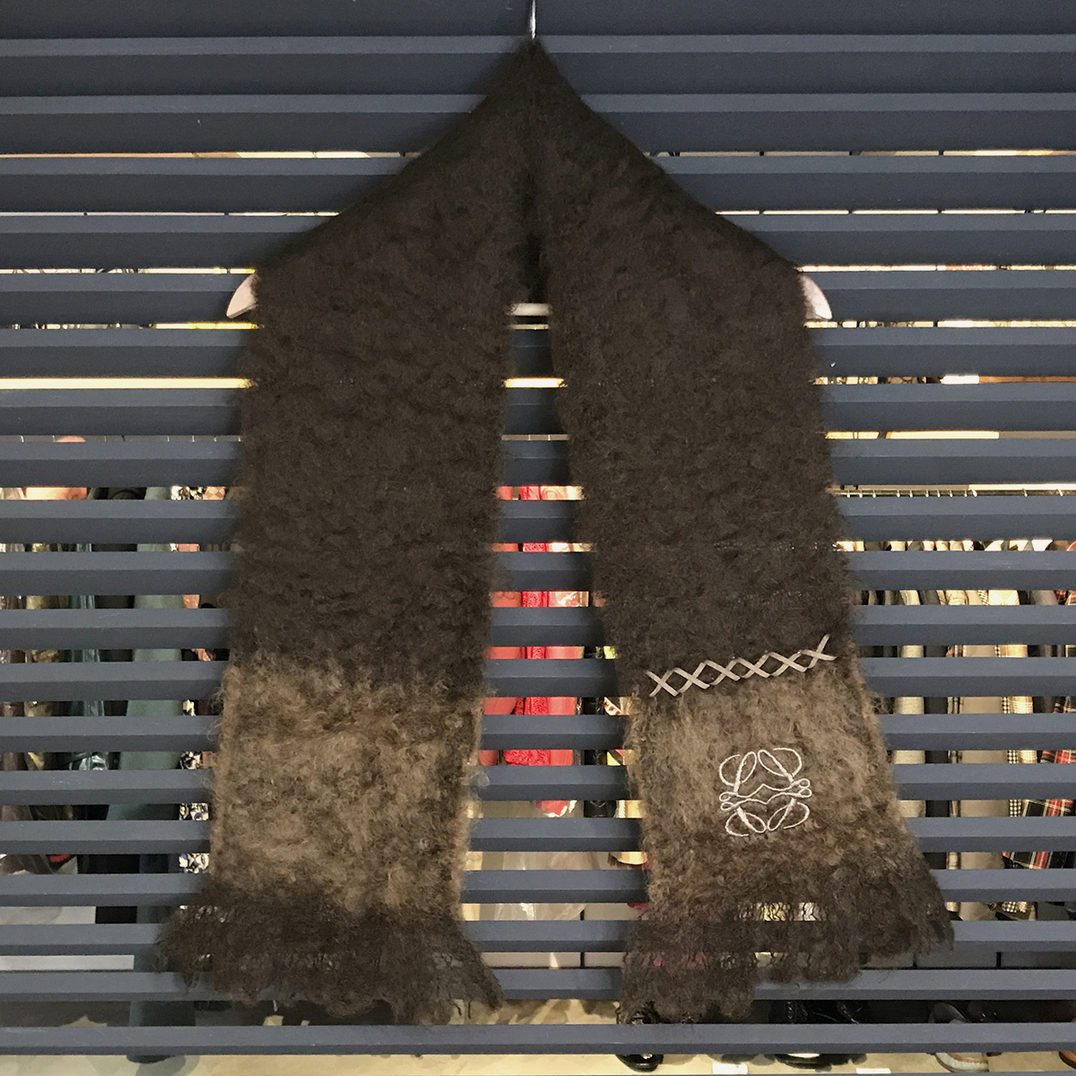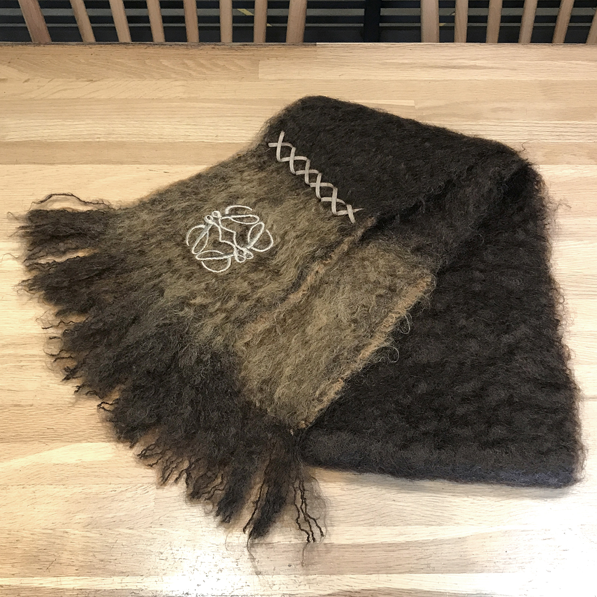 【超美品】ロエベ アナグラム モヘア マフラー ブラウン ベージュ 茶色系 10420