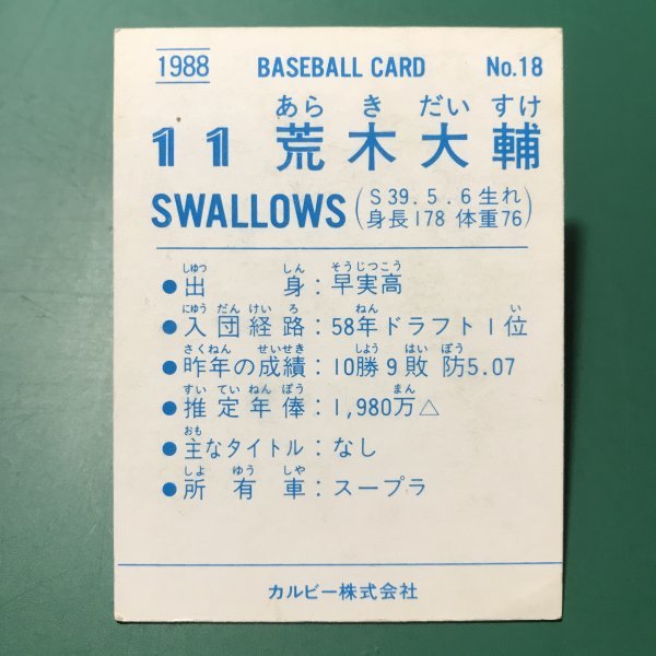 1988年 カルビー プロ野球カード 88年 18番 ヤクルト 荒木 【管737】