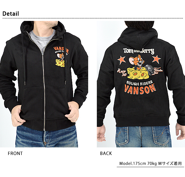 | vanson×TOM&JERRYコラボ ボンディングフルジップアップパーカー◆vanson VSN-M01883 | |||||||||||||||||||||||||