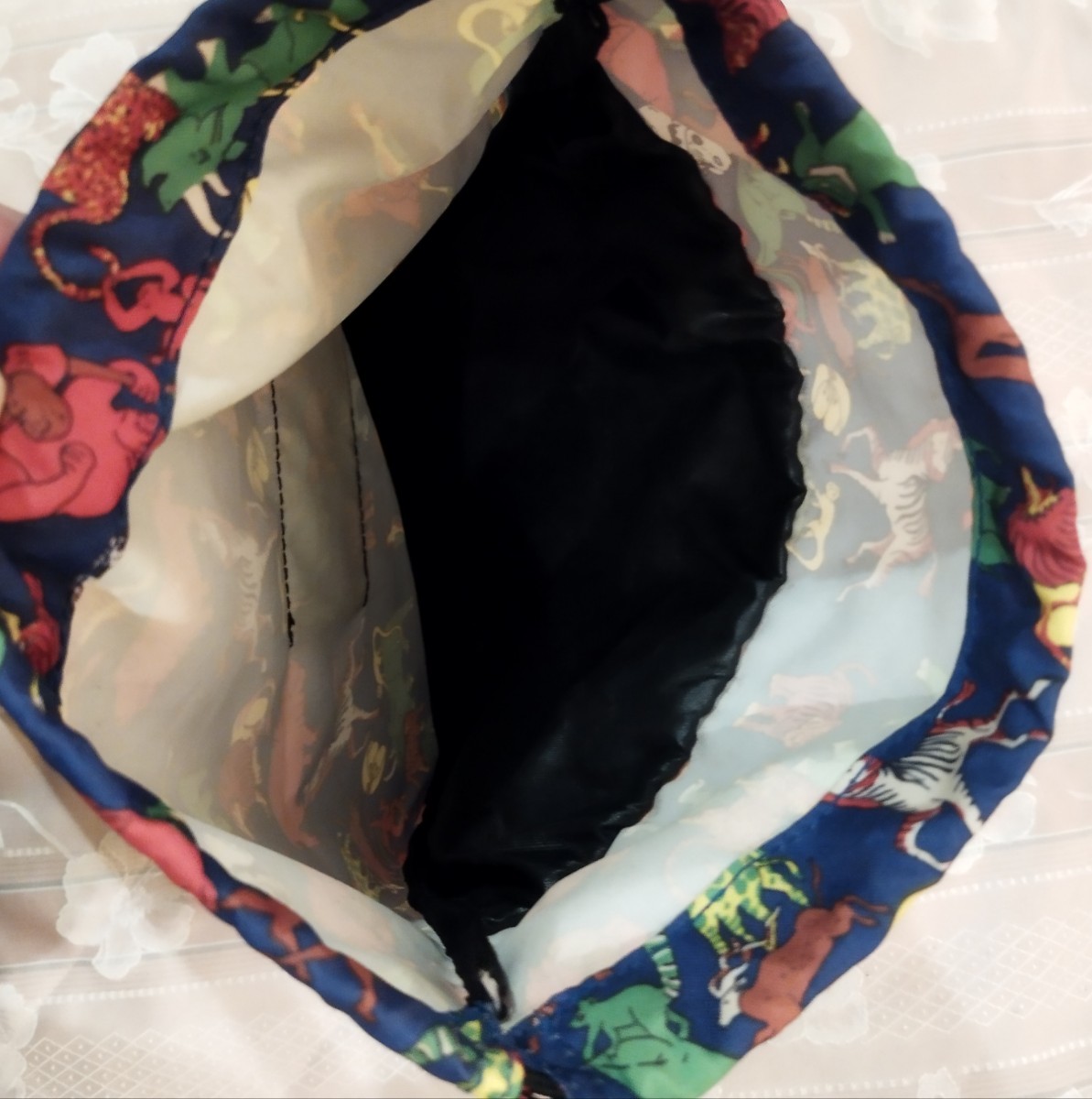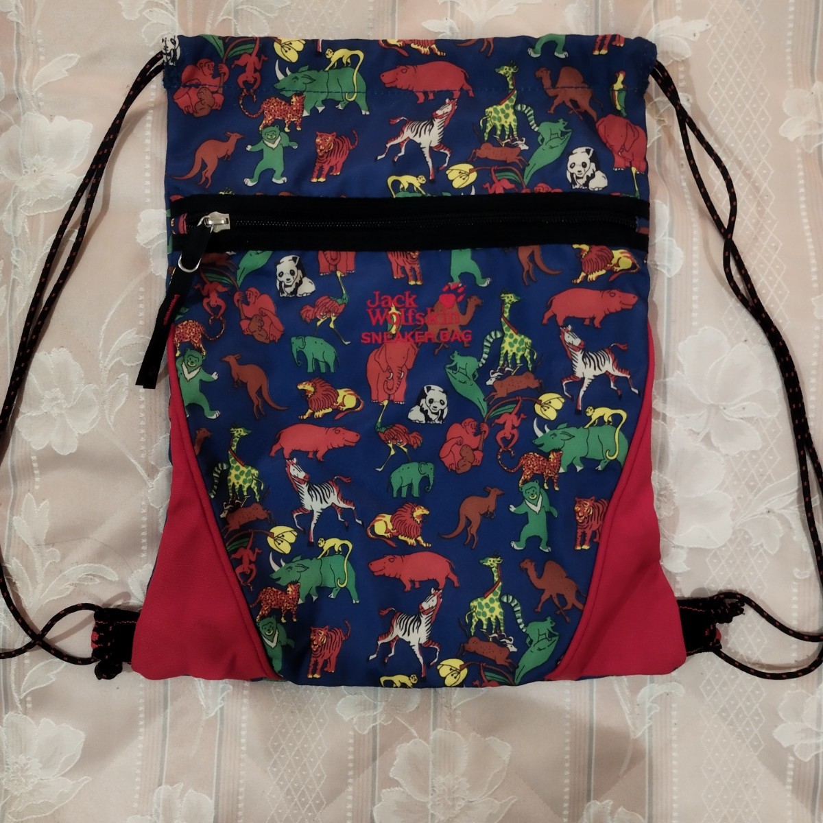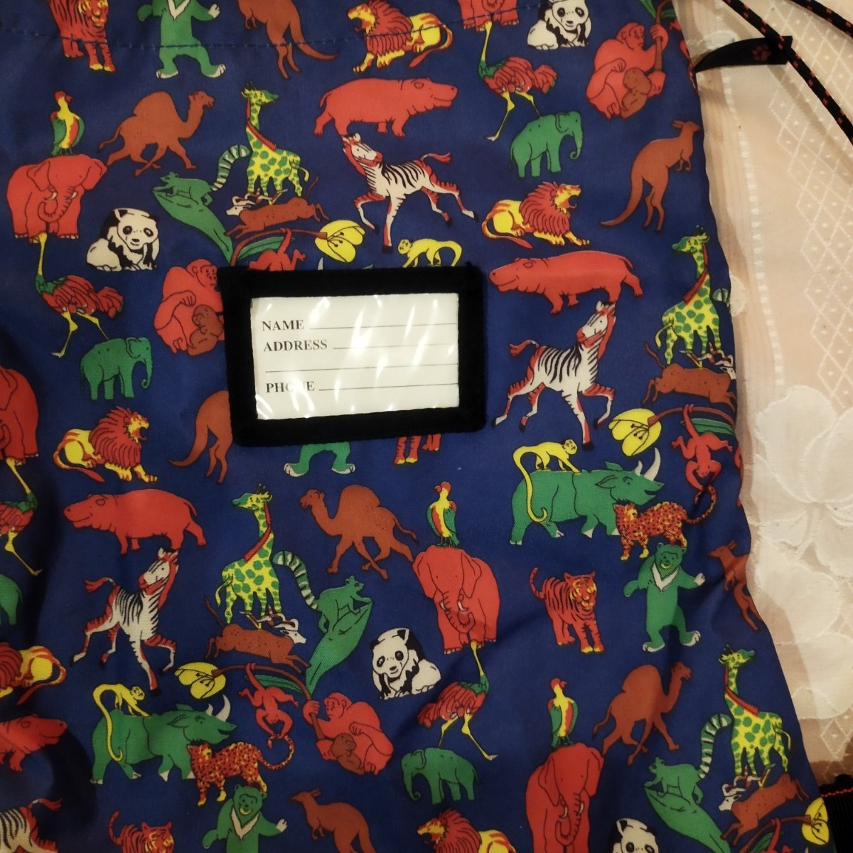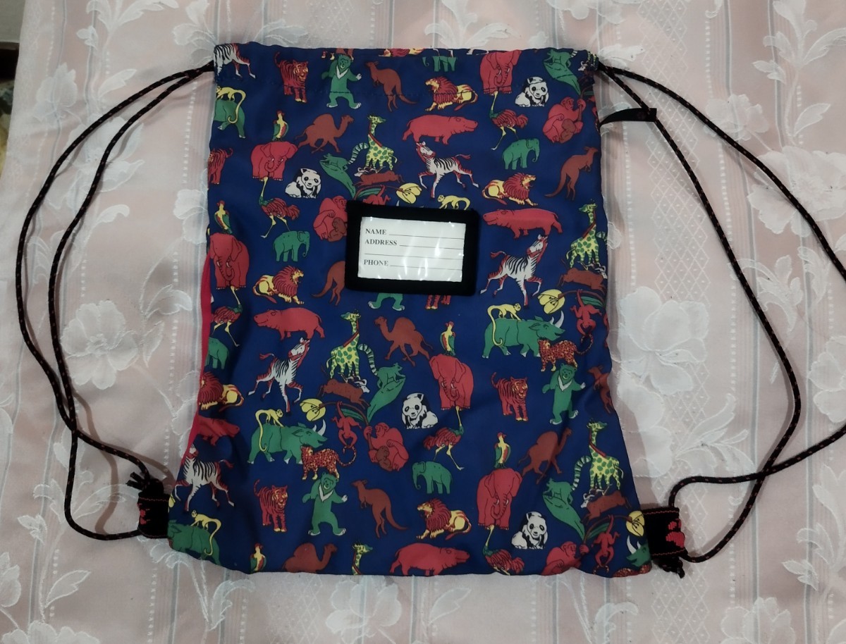 お子様用ナップザックにピッタリな、ゾウさん パンダ、キリンやカバなどの動物柄が楽しい