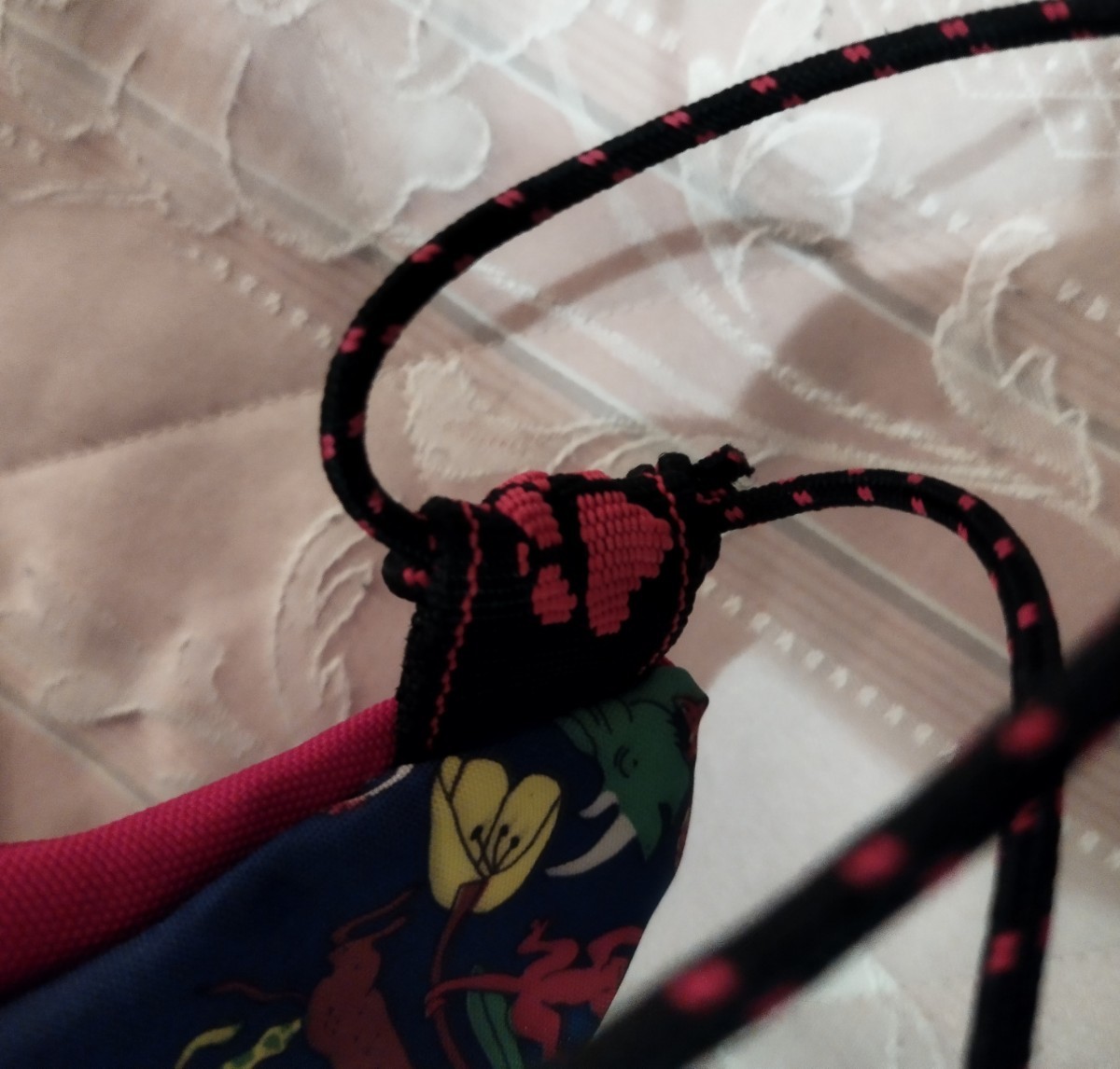 本来は靴袋のようですが、背負えるので、ナップザックとして。