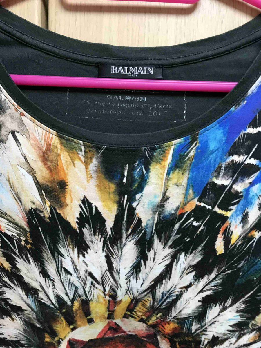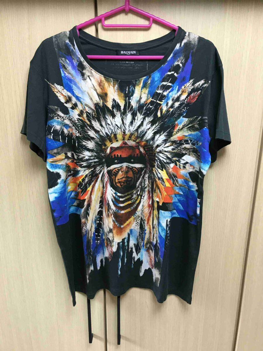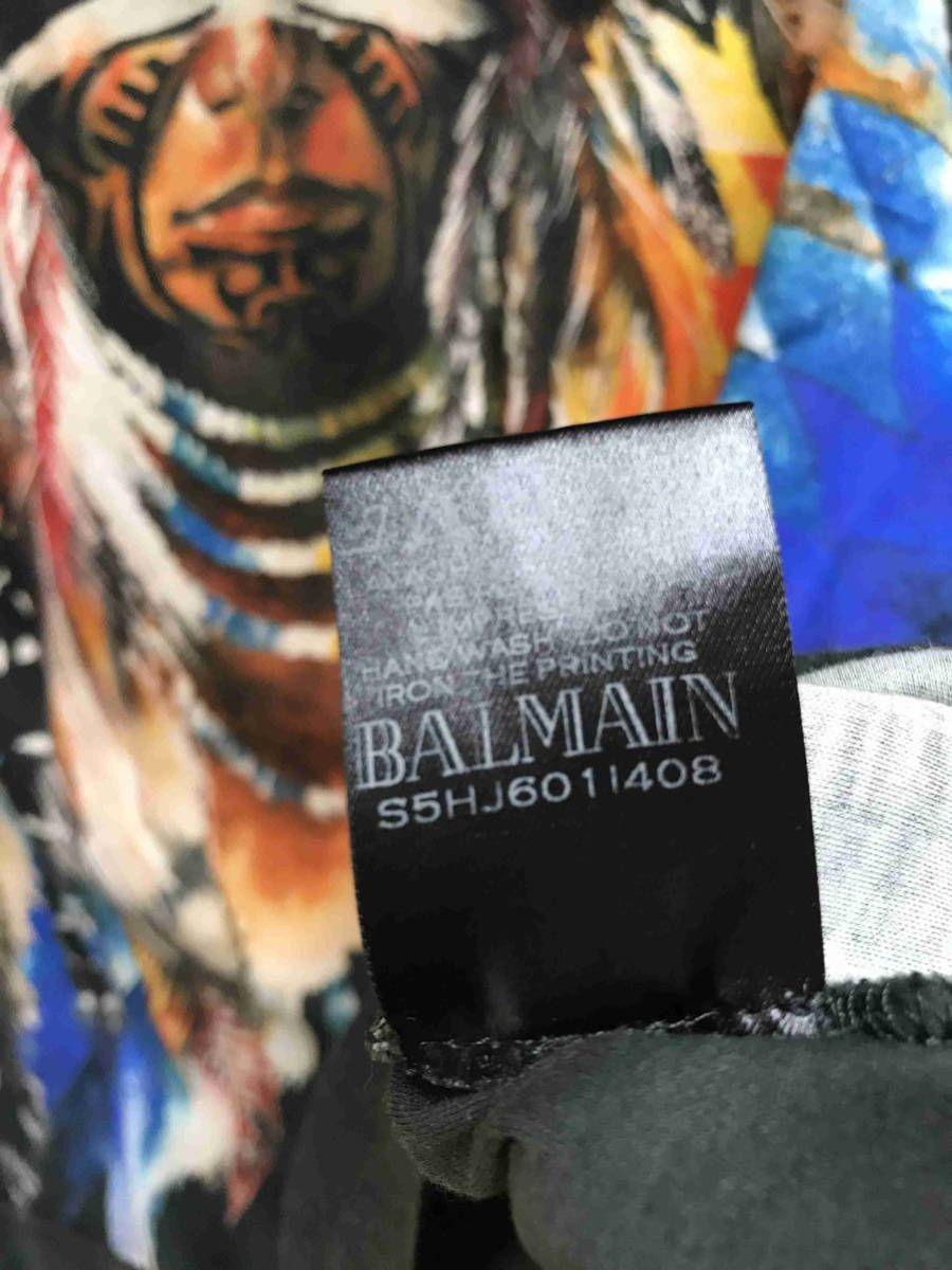 正規 15SS BALMAIN バルマン インディアン プリント Tシャツ カットソー 黒 M