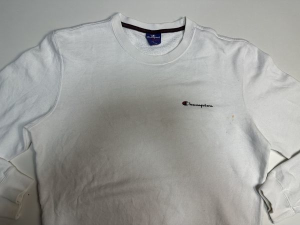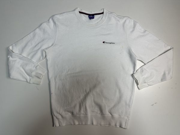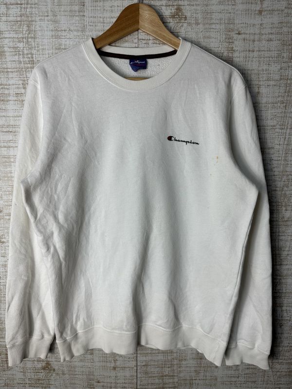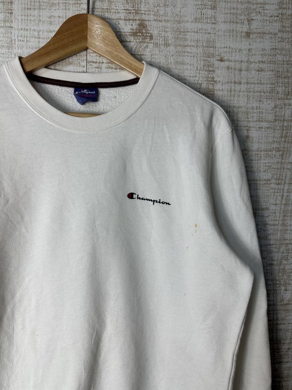 ●US USED 訳アリ US古着 Champion チャンピオン スウェット トレーナー ロゴプリント 起毛 ホワイト白【M】コットン