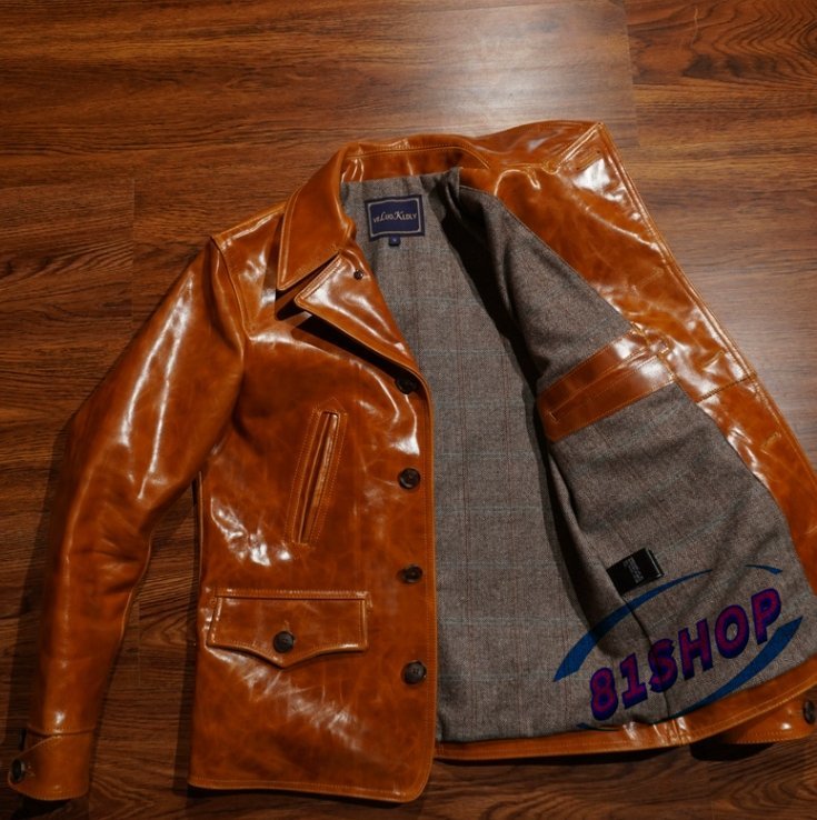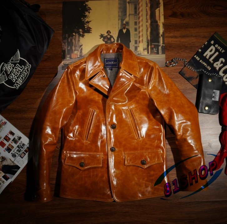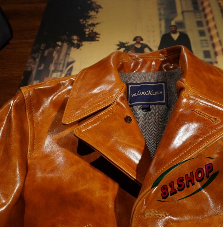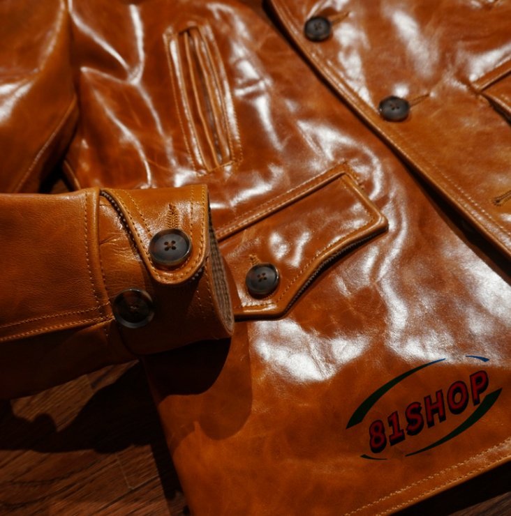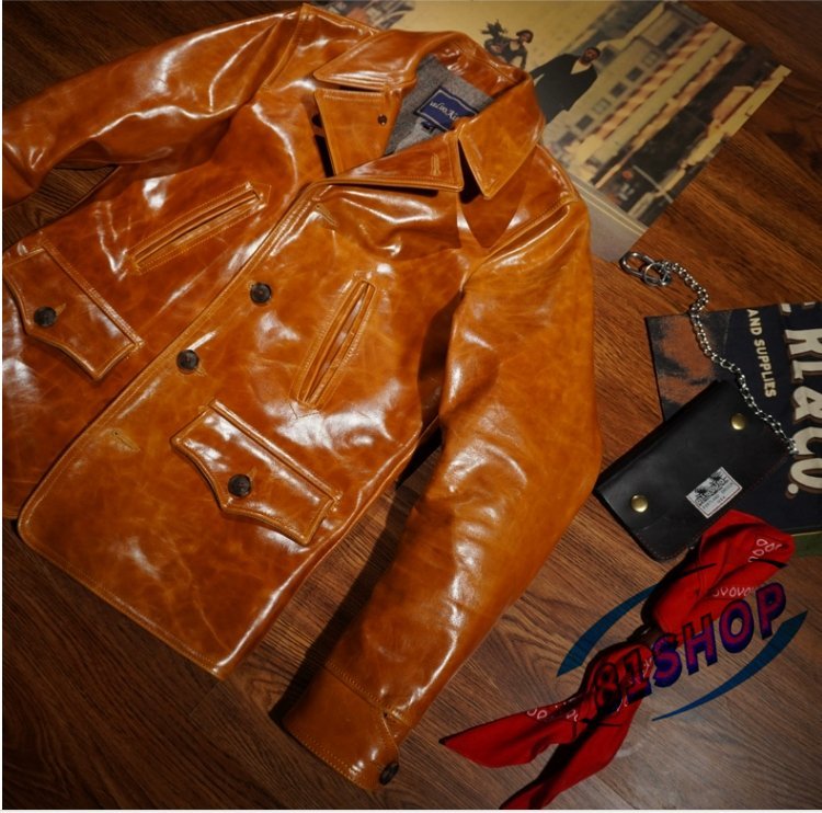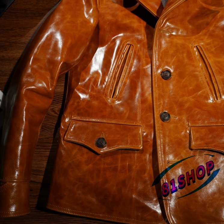 「81SHOP」 ろう染めの革ジャン レザージャケットの馬革の の ァッション レトロ本革レールコートです■S