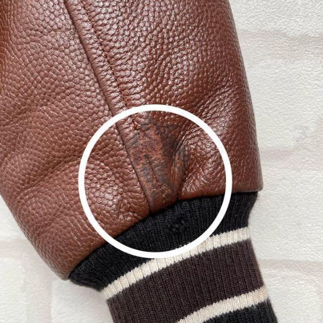 袖口の革部分に擦れあり、リブ部分に貫通していませんが小穴があります。