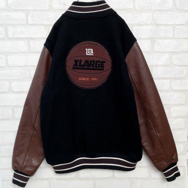 エクストララージのバスケットボール刺繍がでっかく入った本革スタジャンです!