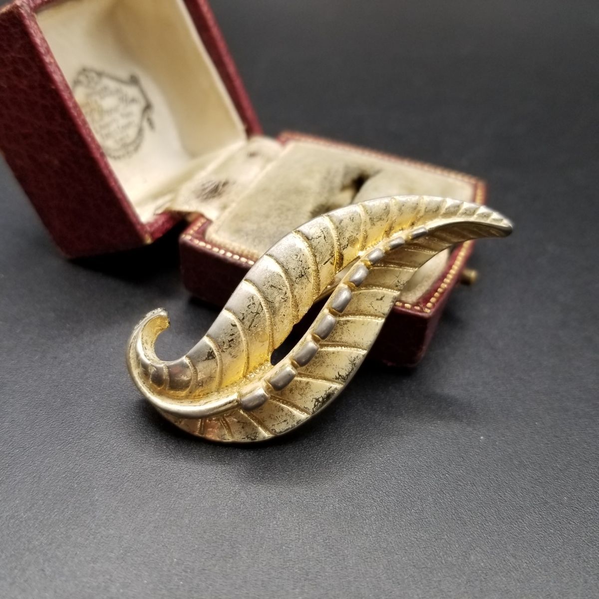 SARAH COV リーフ 葉 モチーフ 曲線 ゴールドトーン 上品 ヴィンテージ ブローチ ジュエリー 輸入 Y9-A