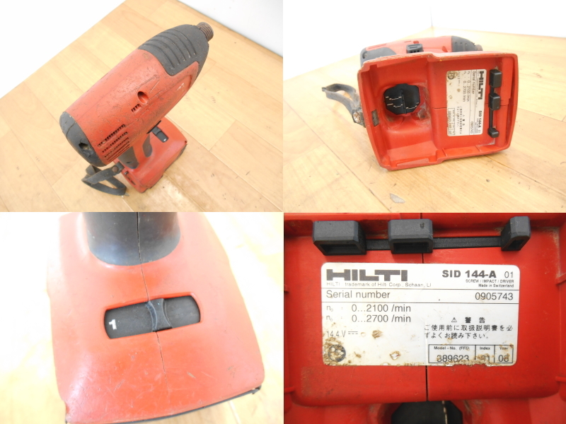 仕様 ●メーカー HILTI ●型式 SID144-A ●外形寸法 W165×D85×H235mm(本体のみ、突起物含む) ●電源 14.4V リチウムイオンバッテリー ●ケース、取扱説明書、充電器、その他付属品付 ■HILTI製、充電式インパクトドライバーを激安価格にて提供いたしますので、この機会に是非よろしくお願いいたします。 ■画像記載通り当方にて動作確認済みとなっております。ライトの点灯、正逆転の切り替え及びトルクの切り替え、無段変速機能も問題ありませんので、よろしくお願い致します。 ■バッテリーも付属しておりますが、バッテリーやカーボンブラシは消耗品ですので、消耗品に関してはノークレーム、ノーリターンでよろしくお願いいたします。 ■当方専門業者ではありませんので、細かな動作まではわかりかねますので、細かな点でのクレーム等はお受けいたしかねますので、御了承下さい。 ■当方本商品に対して専門知識がありませんので、専門知識を要する質問、動作にはお答えいたしかねますので、ご了承の上宜しくお願いいたします。 ■動作確認、簡単な清掃も行っていますのでご検討宜しくお願い致します。 ■新品ではありませんので使用感や多少のキズ等あります。ご理解のうえ入札ください。コンディションに強いこだわりのある方はトラブルの原因となりますので、入札はお控え下さい。 ■画像にあるものが全てです。 ■その他ご質問はお気軽にどうぞ。 | ||
