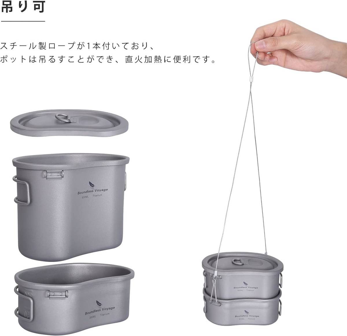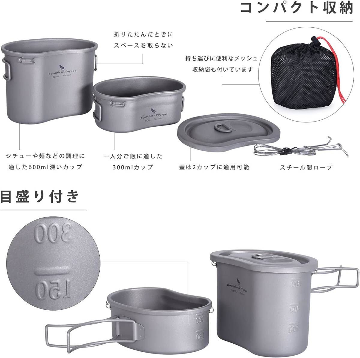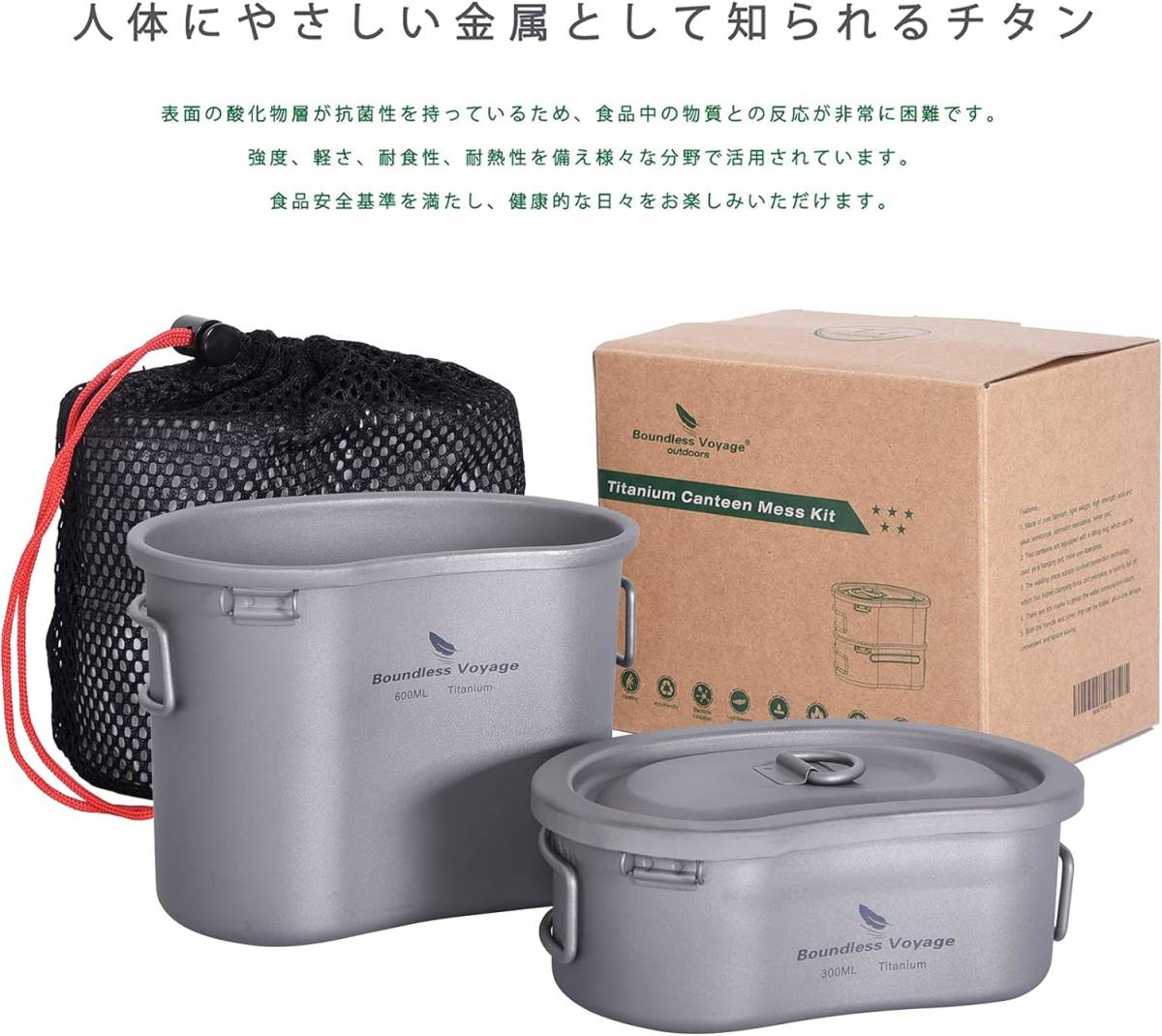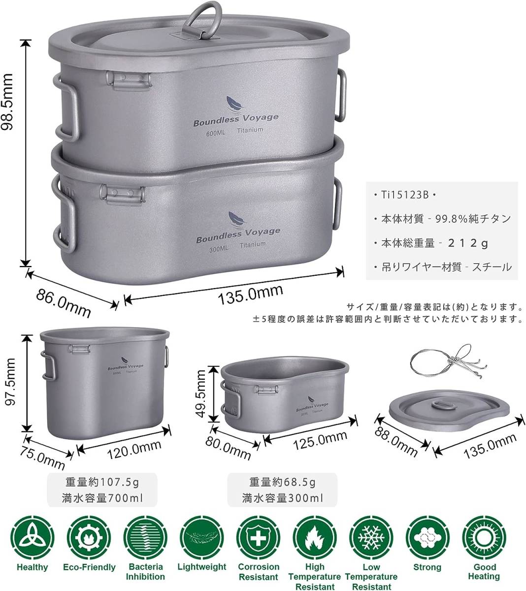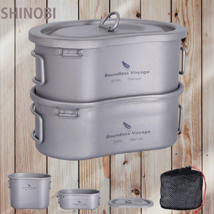600ml+300ml チタン製 アウトドア 飯ごう クッカー 兵式 折りたたみハンドル付 重量 (約) 212g ハンゴウ、弁当、鍋、カップとして