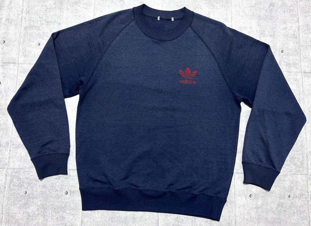 80s~90s アディダス デサント ラグラン スウェット トレーナー 立体ロゴ  3Dロゴ クルーネック adidas トレフォイル 柳8549 80年代~90年代 オールド ヴィンテージ ビンテージ vintage