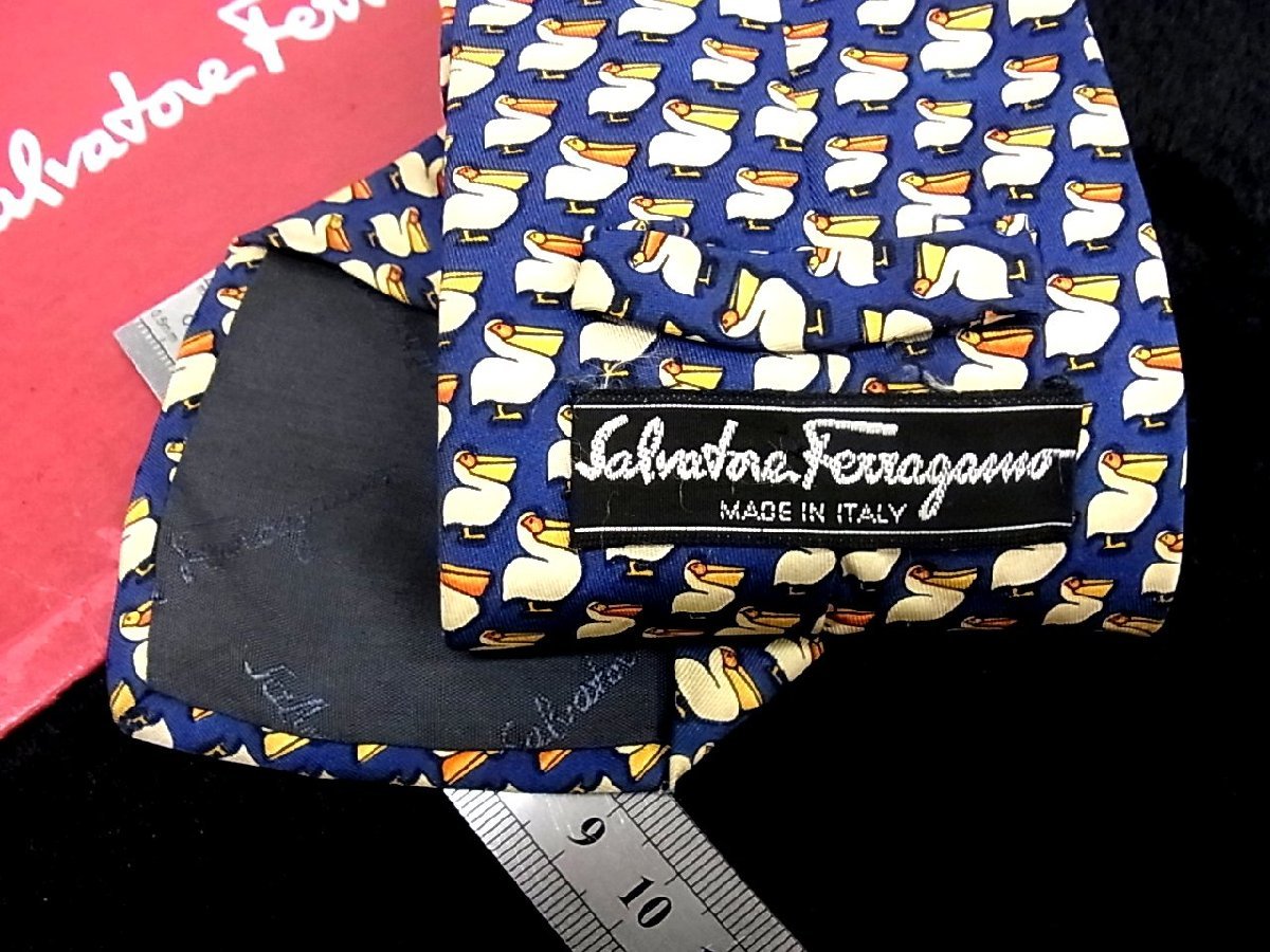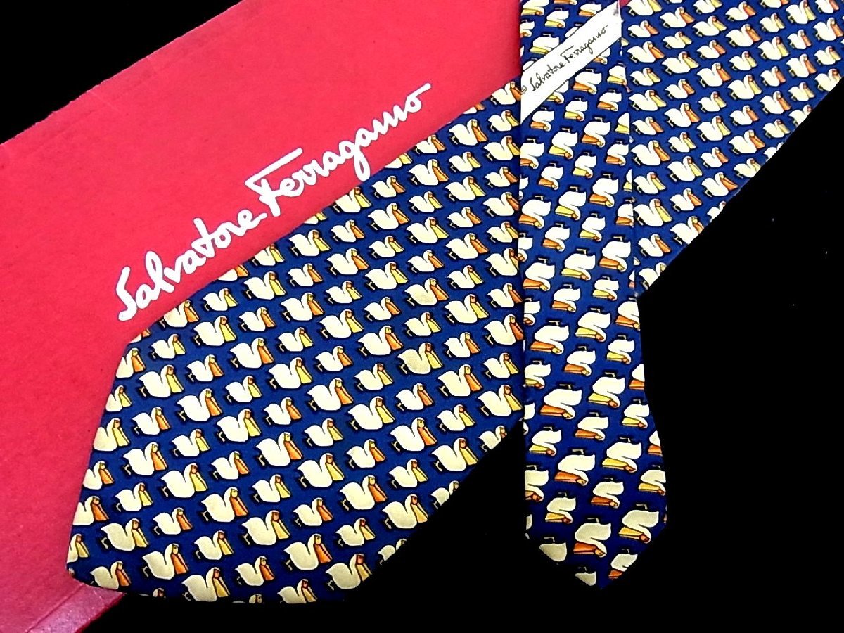 ★今週の特売★4071★高級ブランド【キャラ柄】★フェラガモ【鳥 ペリカン 柄】ネクタイ★