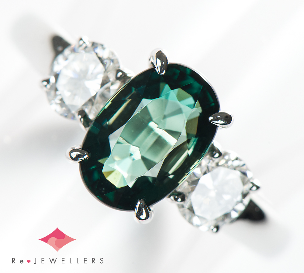 近年、非常に産出量の少ないレアストーンとして有名になりつつあるグランディディエライト1.78ctをセットしたリング。内包物の混入も多く、透明度が抜群に高い上に1ctアップの大きさを持つものは非常に稀少です。角度によって色が異なって見える多色性も楽しむことができます。サイドのダイヤモンドはオーバルで2石合わせて0.56ctと大きく、眩い煌めきがメインストーンに負けない存在感を放ちます。透明感のある澄んだグランディディエライトの色合いとその輝きに心を奪われる、なかなか出会うことのない上質なジュエリーです。
