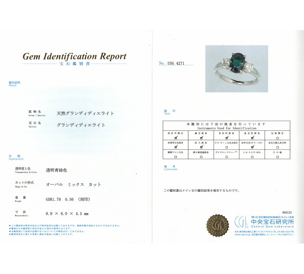鑑別書(中央宝石研究所発行)