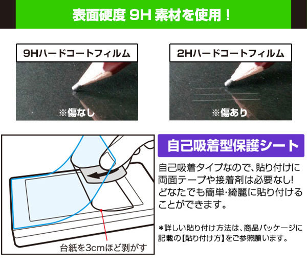 表面硬度9H素材を採用しフィルムにキズがつきにくくなっています。
