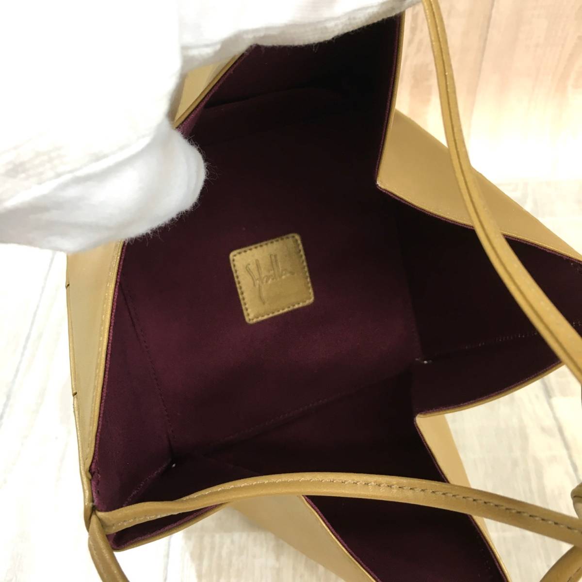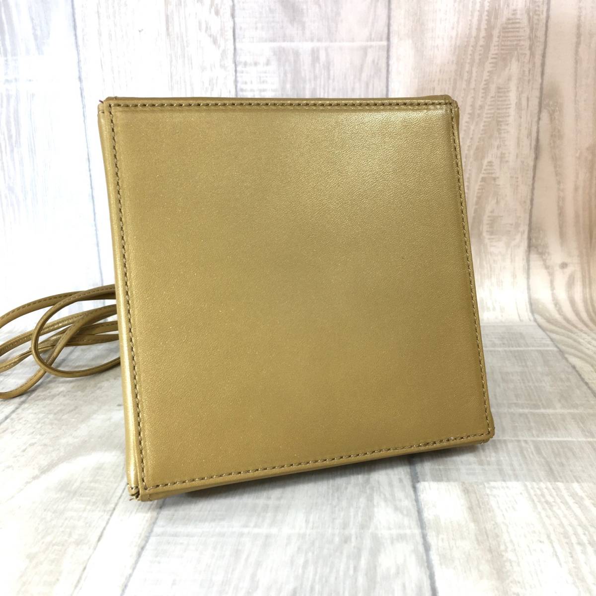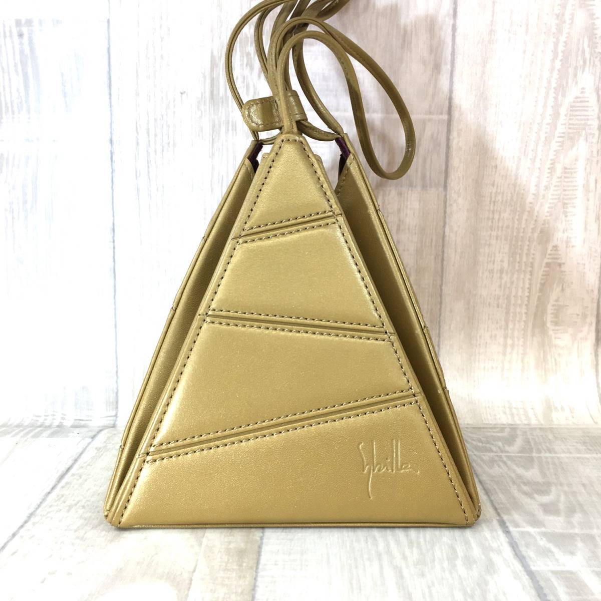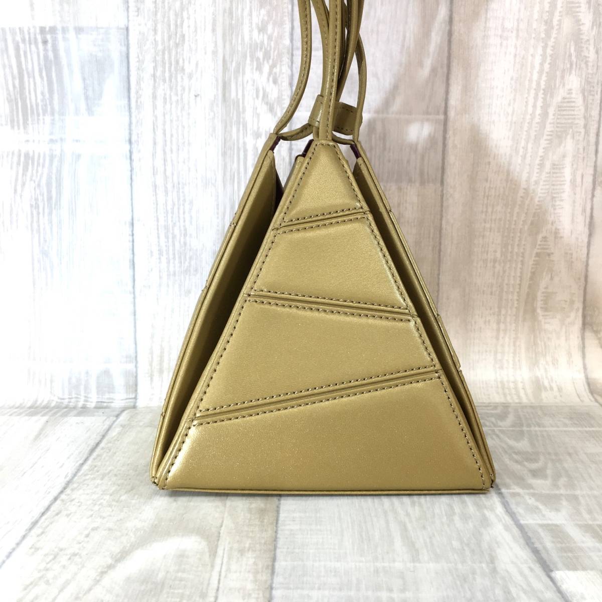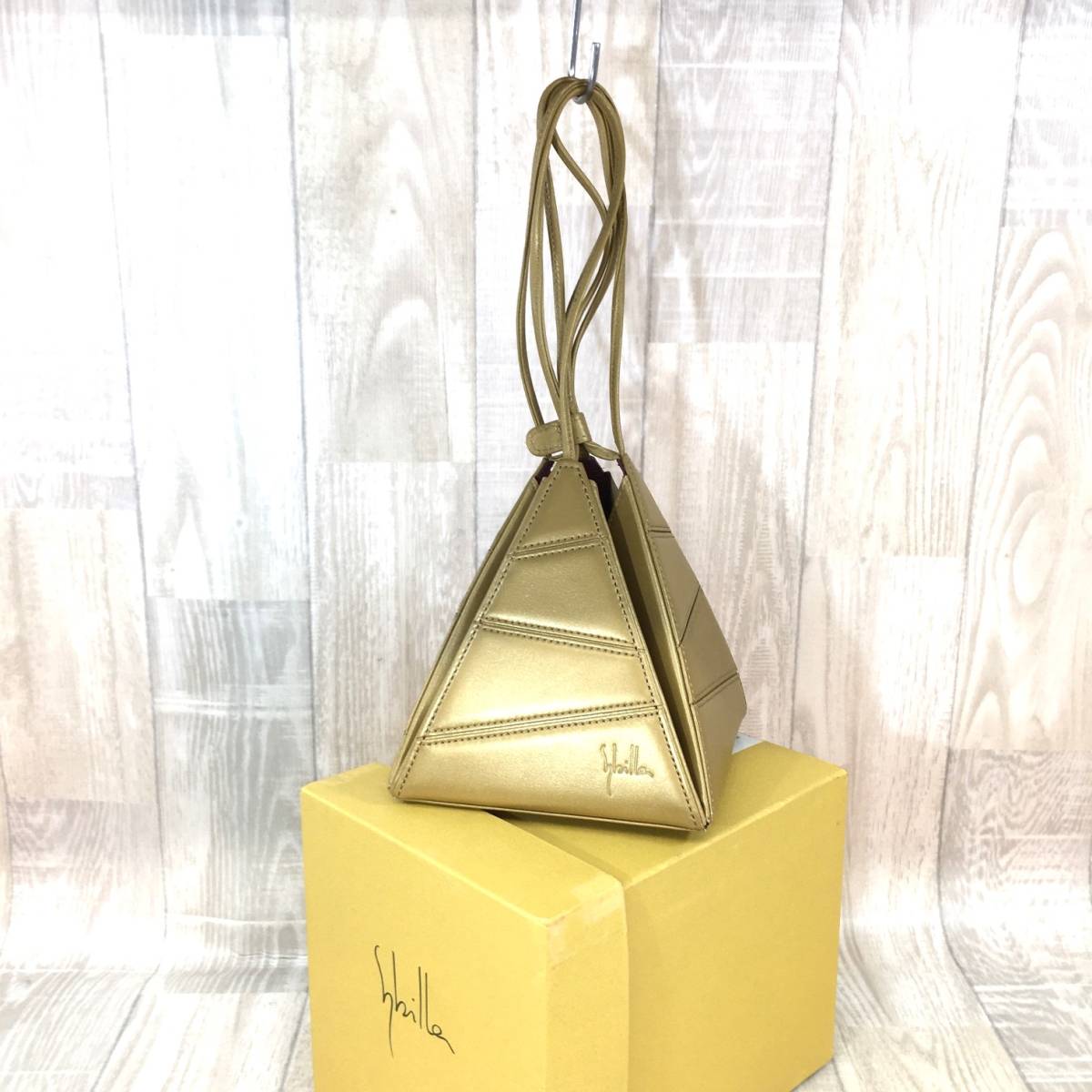 NZ2253●Sybilla : レザー 三角 ハンドバッグ●シャンパンゴールド 本革 名作 牛革