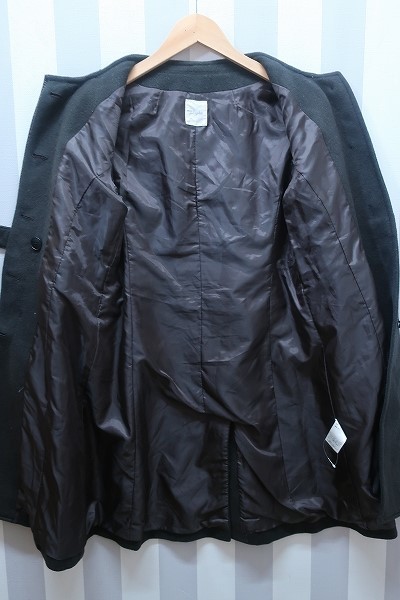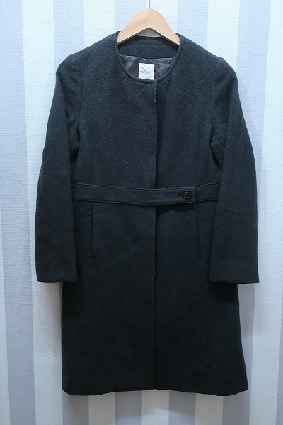 ウール混ノーカラーコート