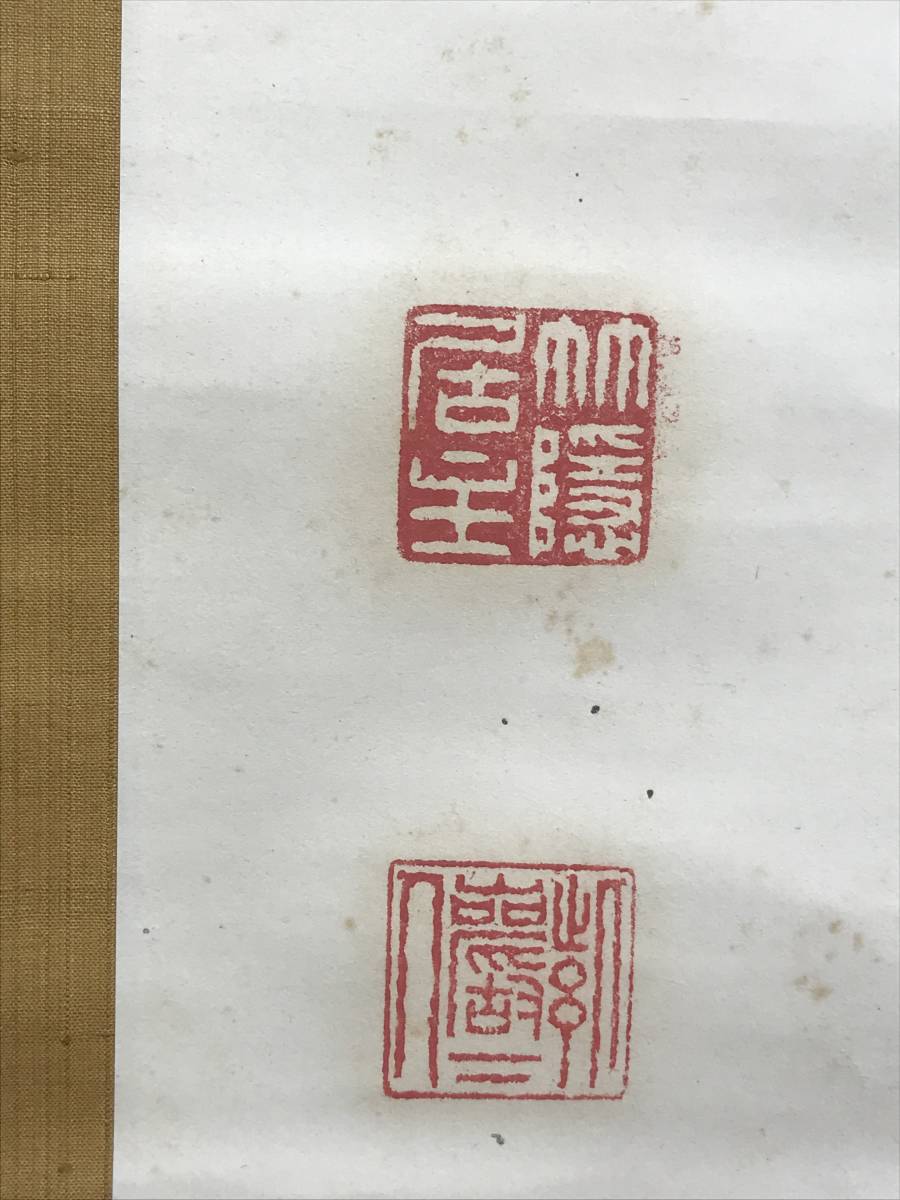 【作品状態】 本紙は紙本肉筆です。  本紙は全体に糊シミ、多少の汚れシミあります。表装は良好です。