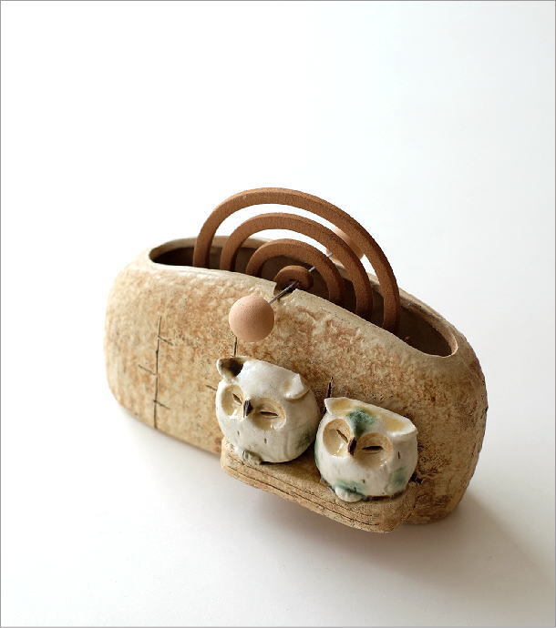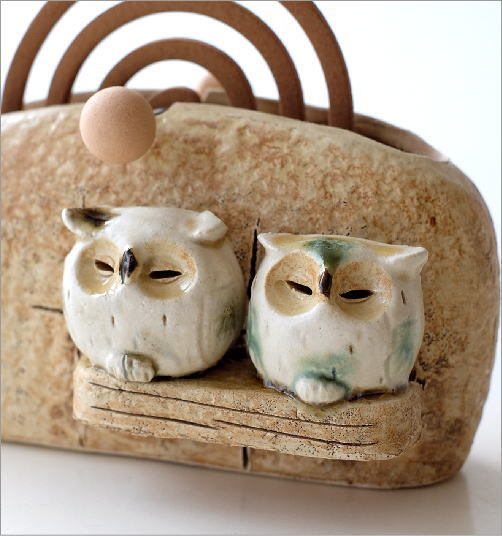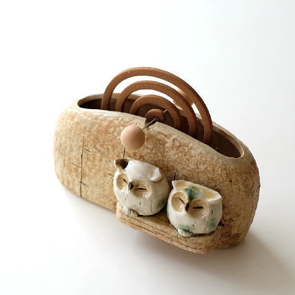 | 和のインテリアに良く似合う 陶器の蚊遣りです ふくろうが2羽止まっていて 線香の煙と共に 静かに夜が流れていきます 針金棒に線香を引っ掛けてセットします 線香を焚かない季節は サイドの穴に棒を挿して 保管しておくことが出来 花瓶やレター入れとしても使えます 商品名 :陶器の蚊遣り ふくろう 商品番号 :mkn2035 全体サイズ(cm) :幅19×奥行9×高さ10 重量 :530g 材質 :陶器 生産国 :日本(瀬戸) ※針金棒の歪みはご容赦ください ※ディスプレイによる色の違いはご了承下さい |
