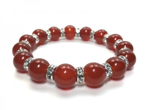こちらは、12mm玉の赤瑪瑙を使用した天然石ブレスレットです。石との間にはロンデルを挟み高級感を演出しています。シンプルなデザインですのでどんなコーディネートとも合わせ易いブレスレットです。石大きさは12mm玉です。内径約18cmです。(サイズ変更の場合は取引ナビにてご連絡をお願いします。) 数に限りがございますので気になる方はお早めにどうぞ。