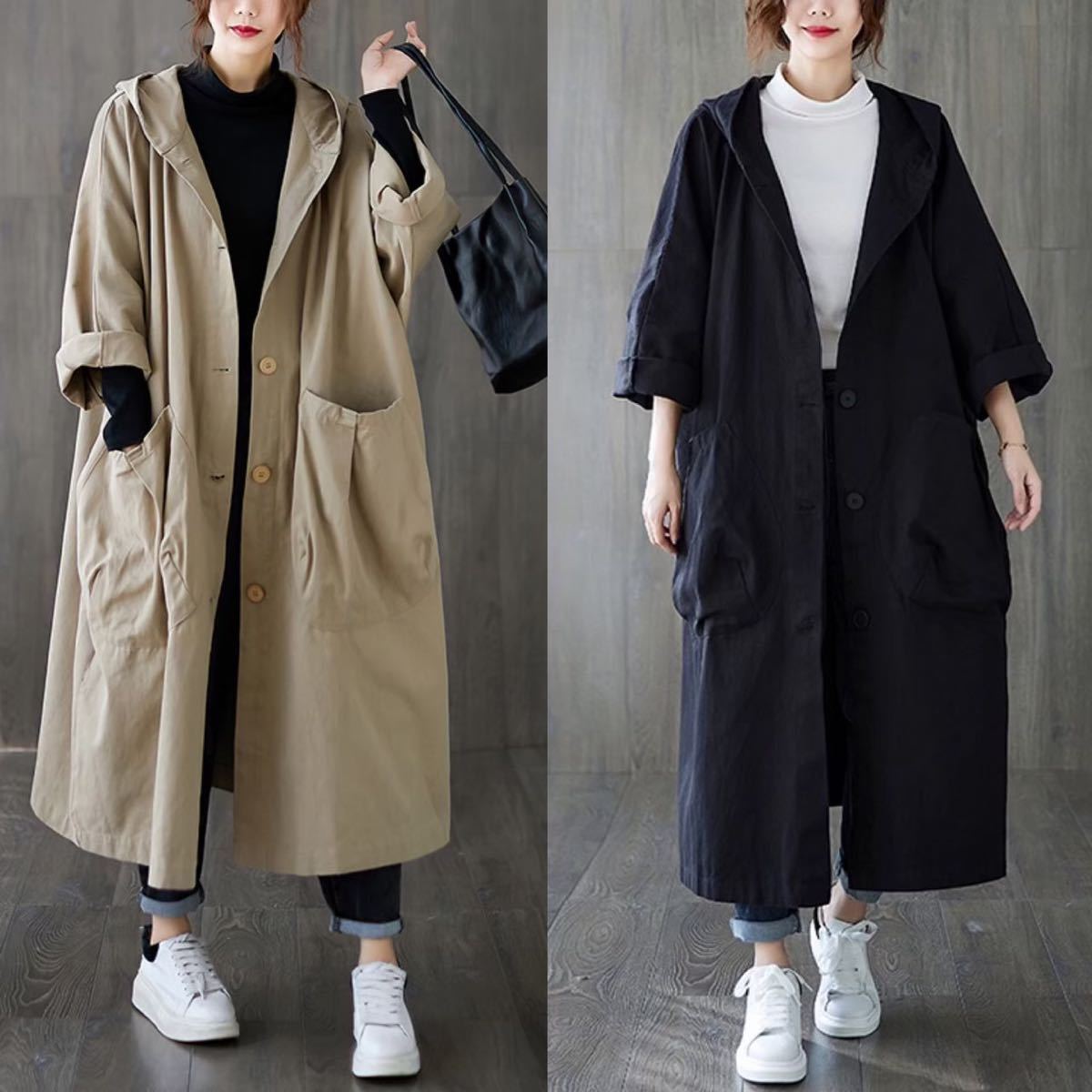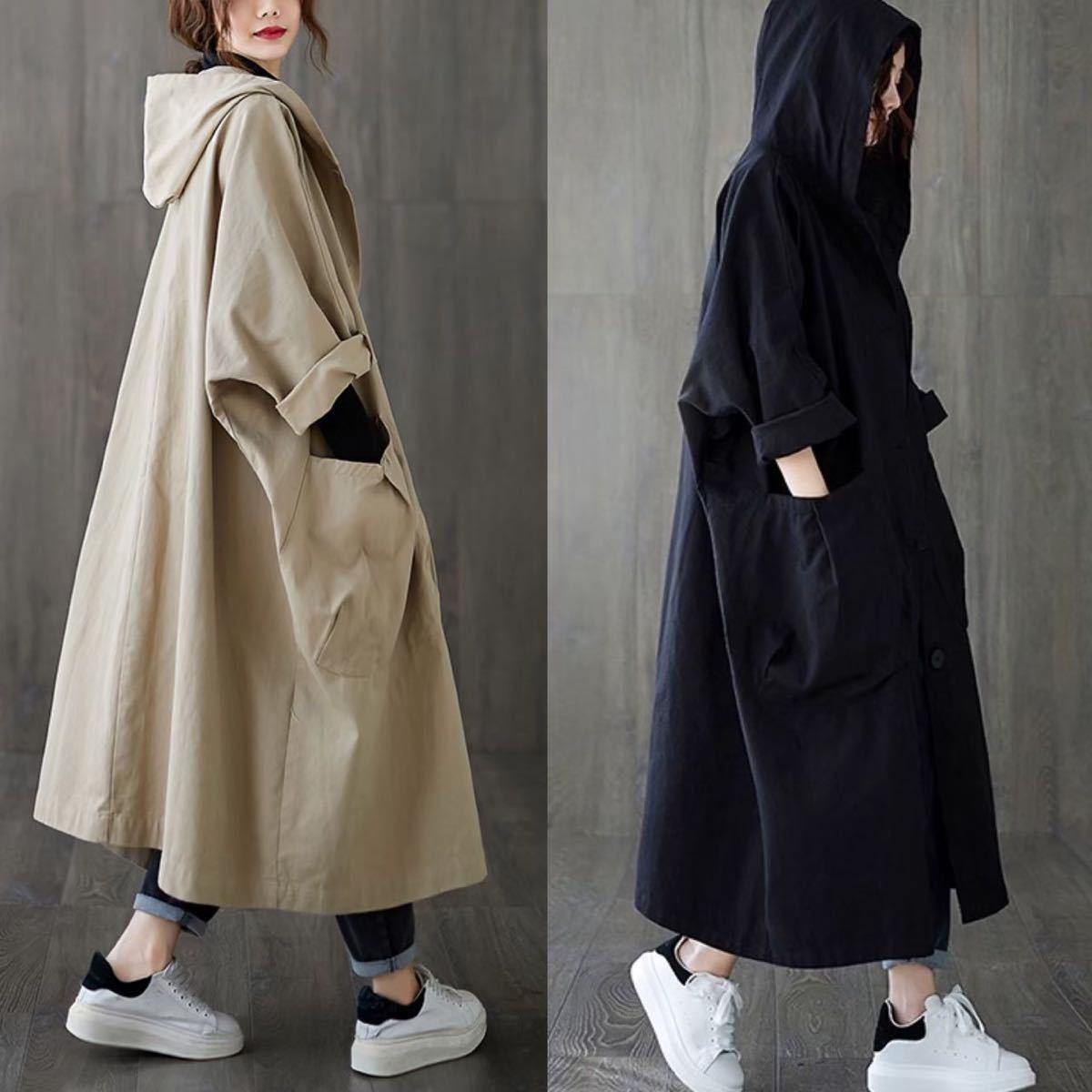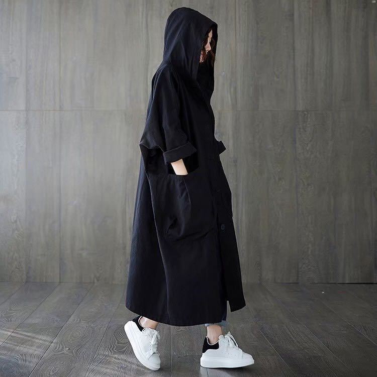 『 ロングコート パーカー コート フード シングルトレンチ アウター 』