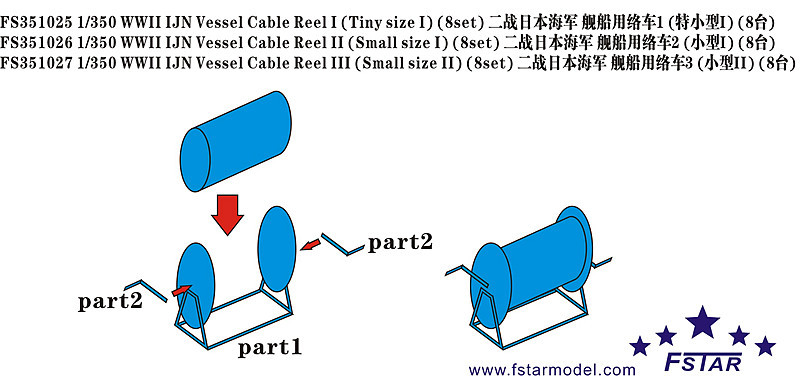 1/350 WWII IJN 日本海軍 艦艇用小型ケーブルリール3 8隻入 |