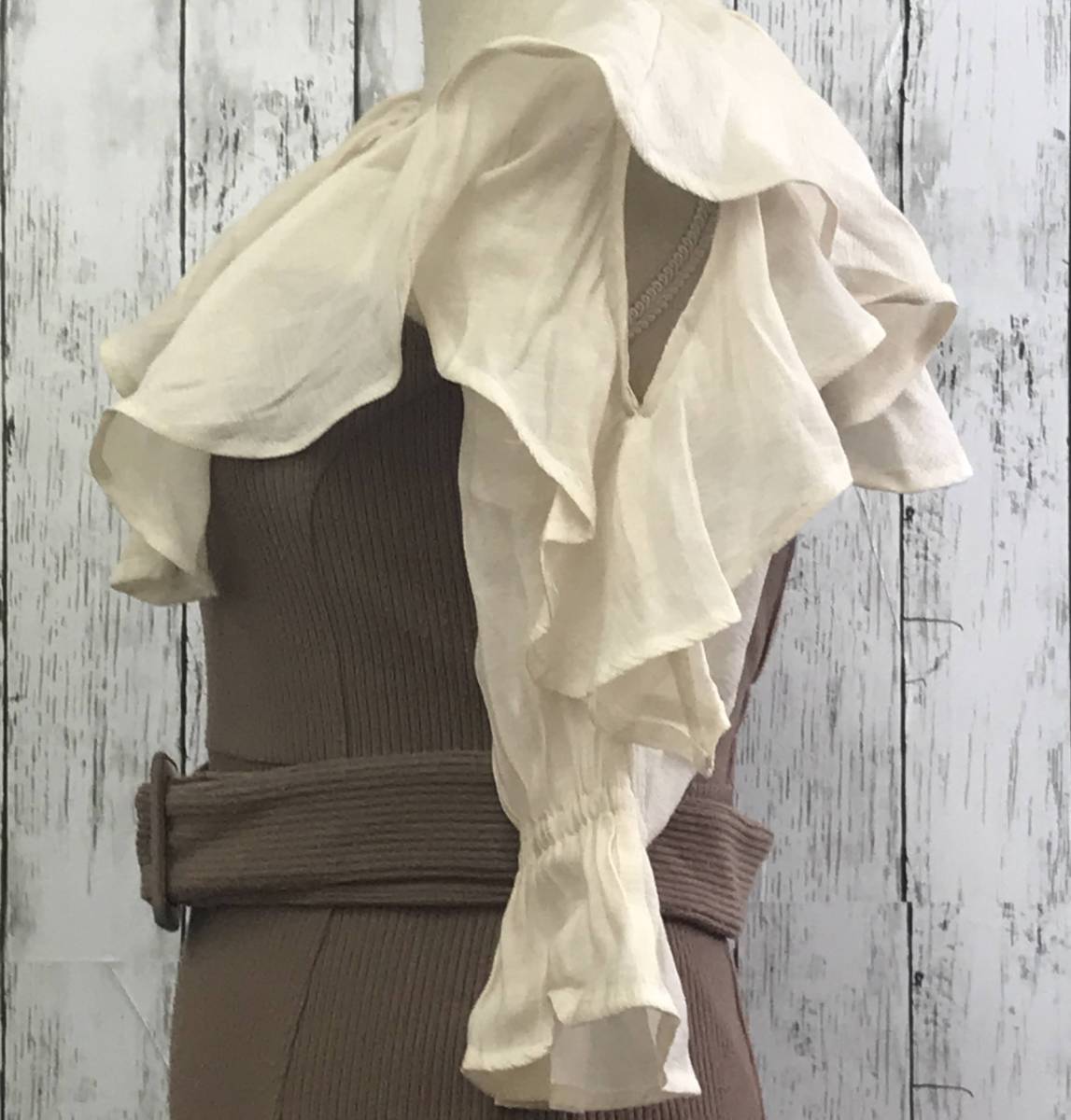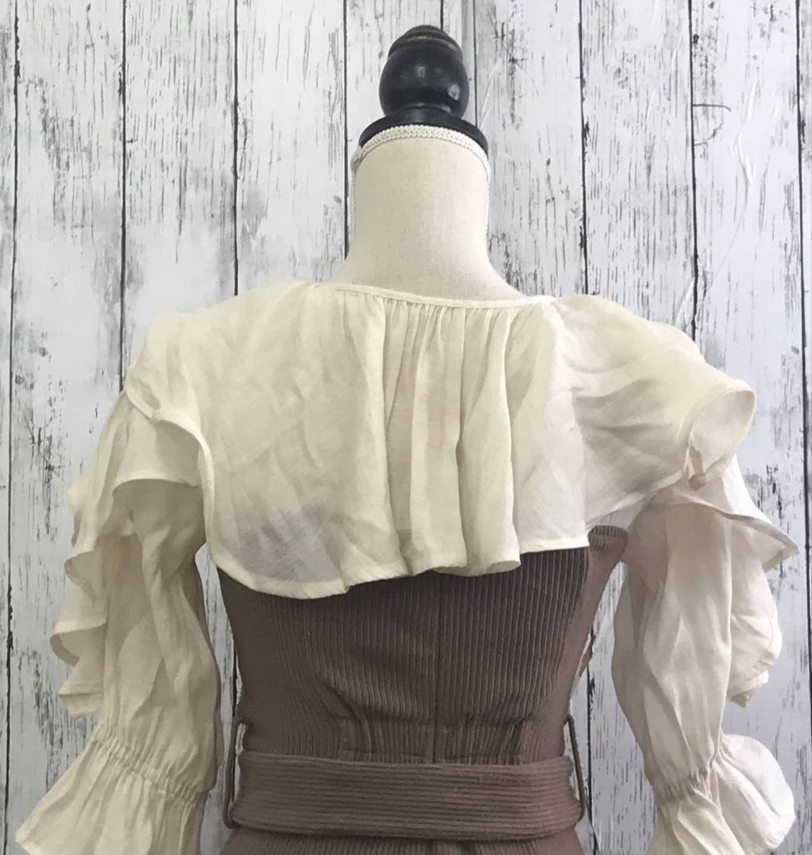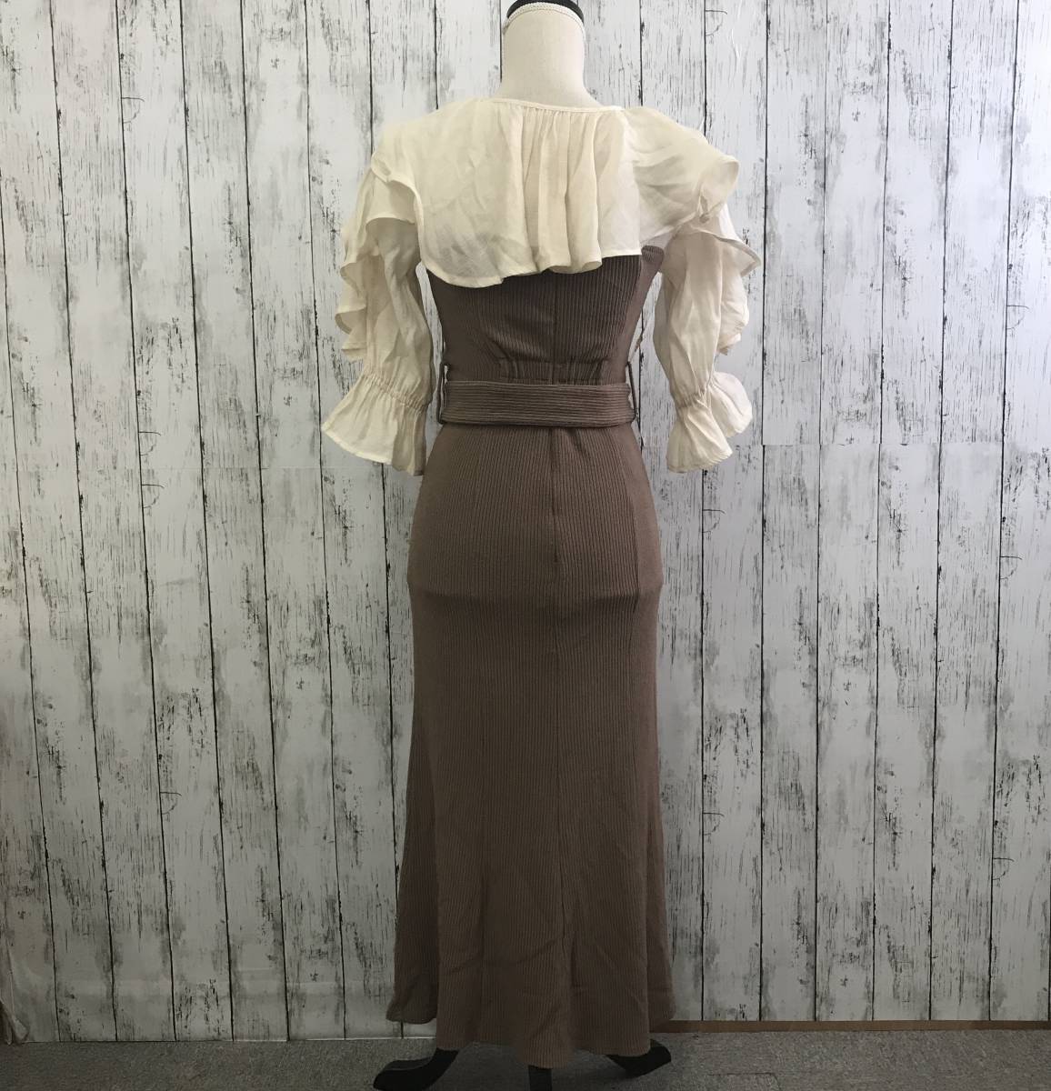 | 商品説明 | 商品名/ラッフルカラー付き長袖ドッキングカットリブワンピース サイズ/表記なし 着丈118cm 身幅39cm 肩幅35cm 袖丈38cm 素材/表記なし 商品状態/傷や汚れあり(全体的に毛玉あり) |