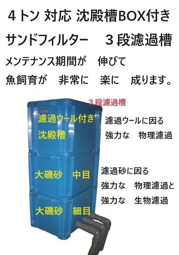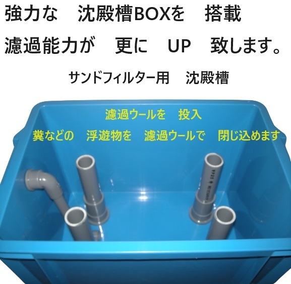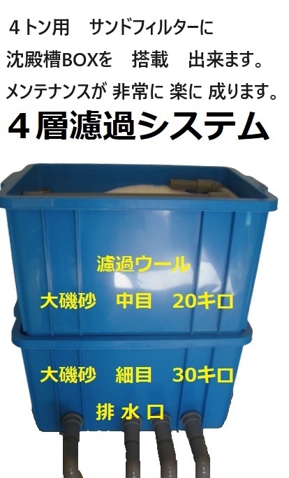 池 生簀 大型ケース対応 沈殿槽BOX 搭載 サンドフィルター 4トン用 3段濾過槽 濾過ウール ホース付き ポンプ無し 5