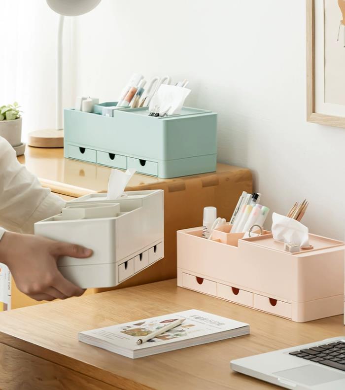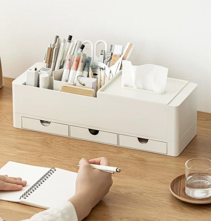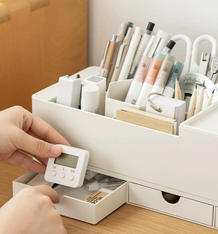 【多機能収納】リモコンやペン、消しゴム、ナイフなどをすっきり整理整頓することができます。形が様々な文具や事務用具などの収納が便利です。