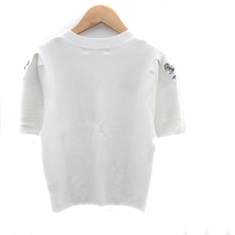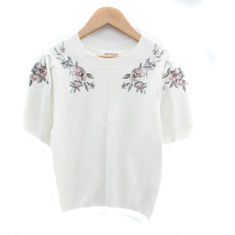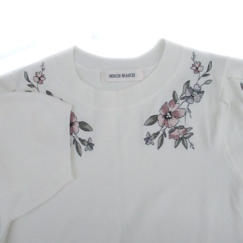 ミッシュマッシュ MISCH MASCH ニット カットソー クルーネック 半袖 花柄 刺繍 M マルチカラー オフホワイト /HO30 レディース