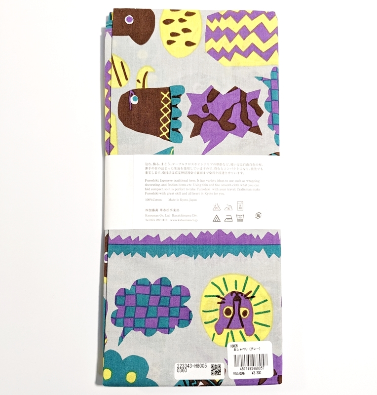 素材:綿100%(キャンブリック)日本製 約115g 日本製 包む、飾る、まとう。風呂敷はもちろん、テーブルクロスやインテリアの壁掛けなど、使い方は自由自在の布です。 薄手の目の細かい綿生地を使用していますので、畳むとコンパクトになり、旅先でも重宝します。 京友禅浸透染で裏面までじゅうぶんに染料を浸透させています。 <柄の解説> ただいま。おかえり。おめでとう。ありがとう。どういたしまして。 日々のなんてことないおしゃべりが気持ちをつなぎます。 動物たちはにぎやかにどんなおしゃべりをしているのでしょうか。 作者:ひびのこづえ 【洗濯方法】 洗濯時は他の物と一緒に洗わず、合成洗剤や蛍光増白剤・漂白剤は使用しないで下さい。形を整えて陰干しがお薦めです。 | ||||||||||||||||