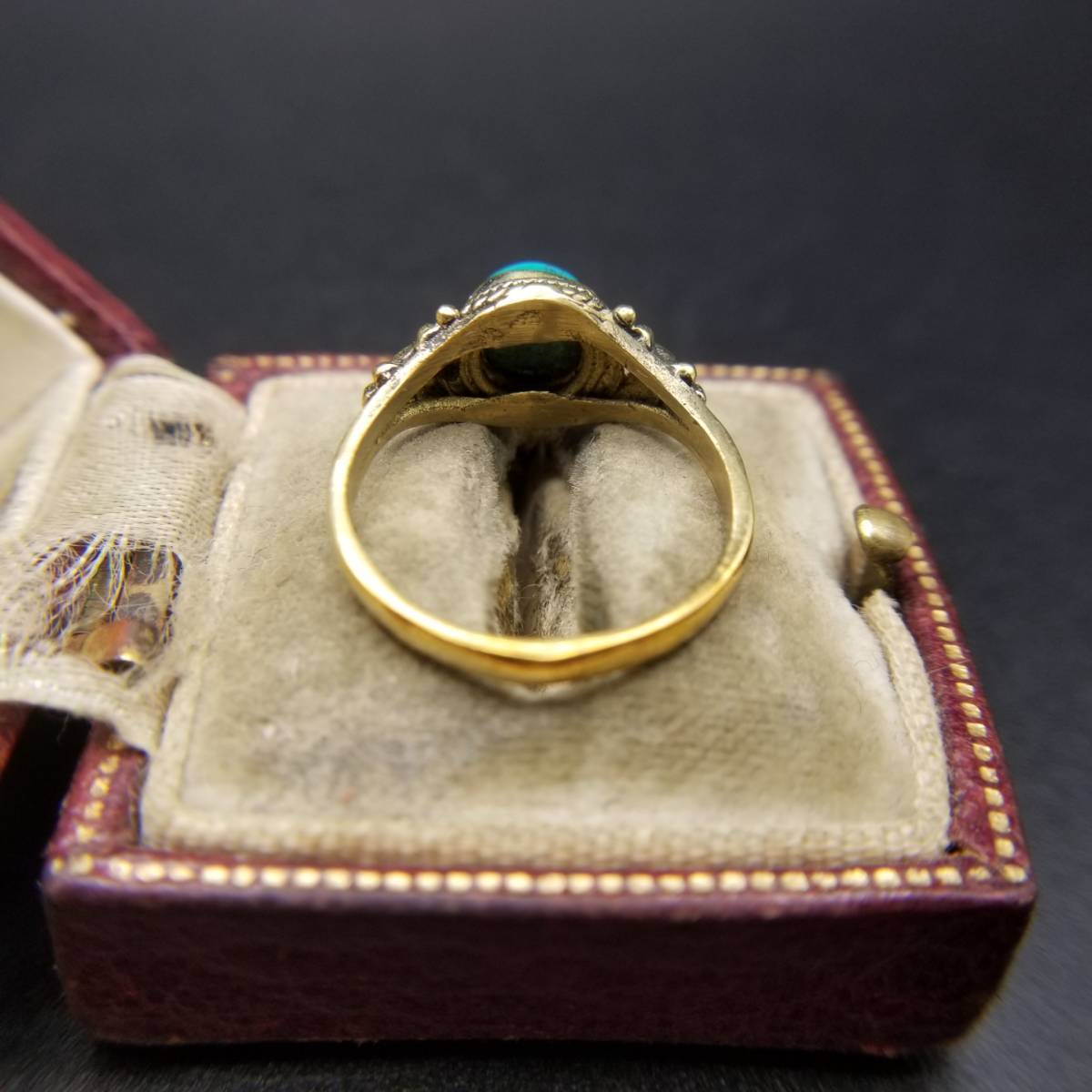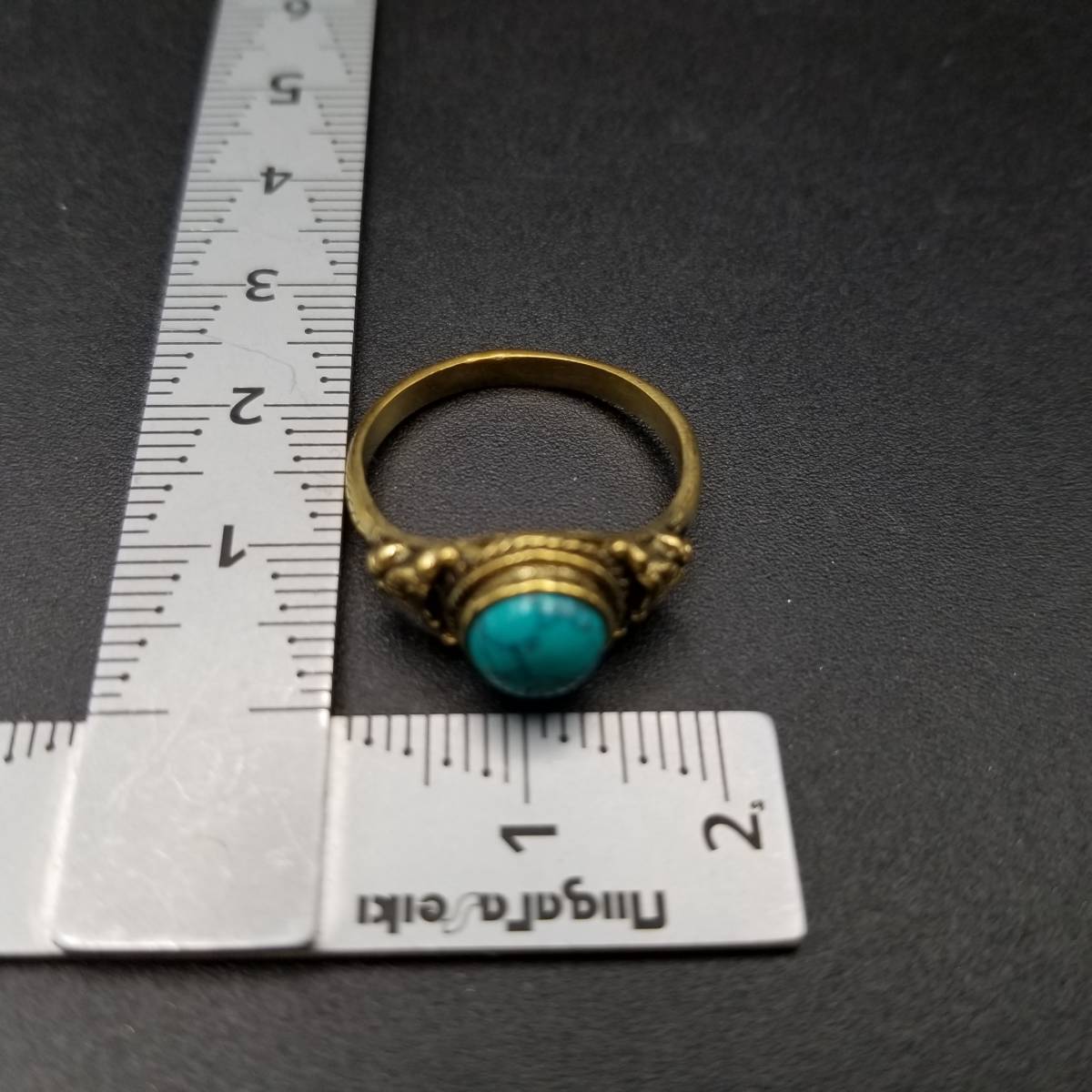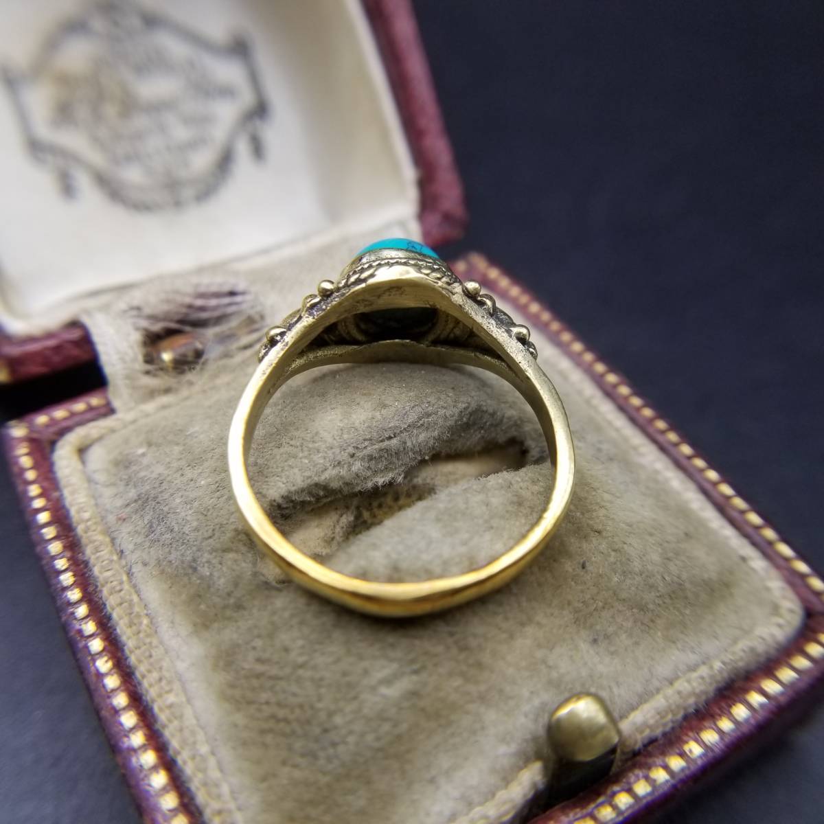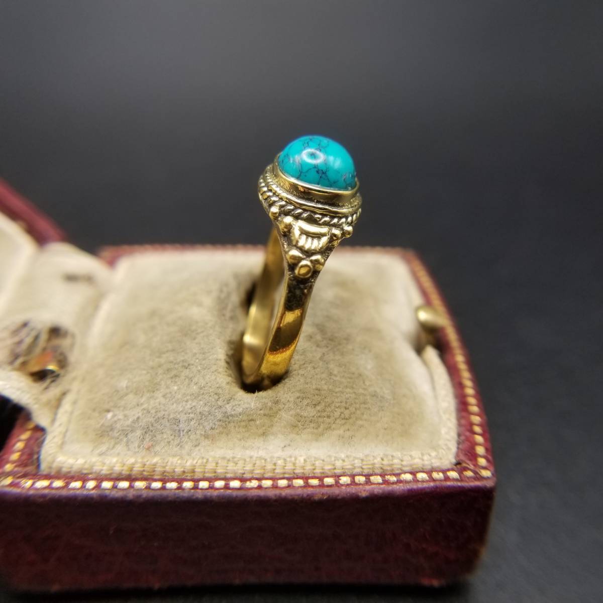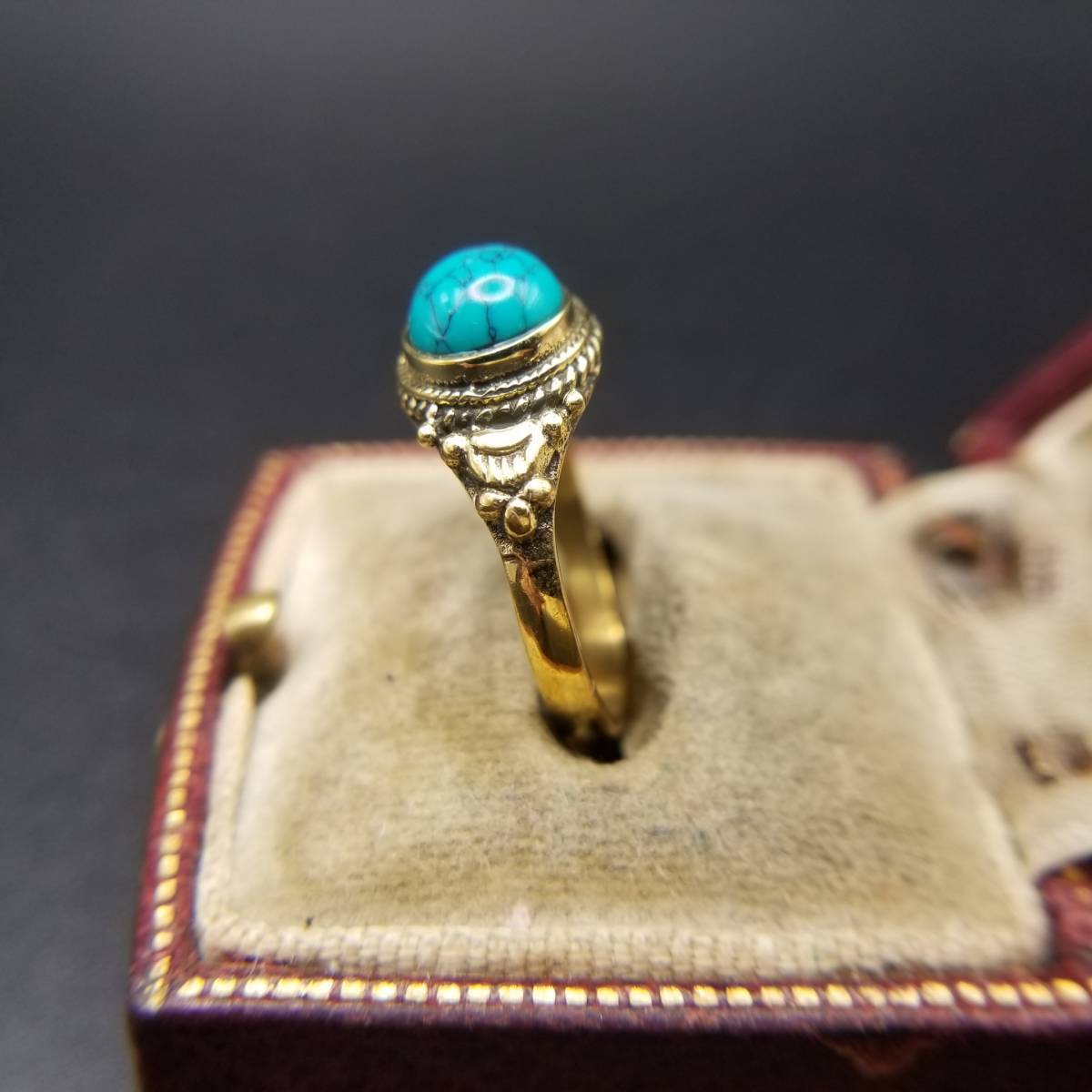 ターコイズ ラウンド カボション クラシック デザイン ゴールドトーン ヴィンテージ リング 指輪 ジュエリー Y11-C②