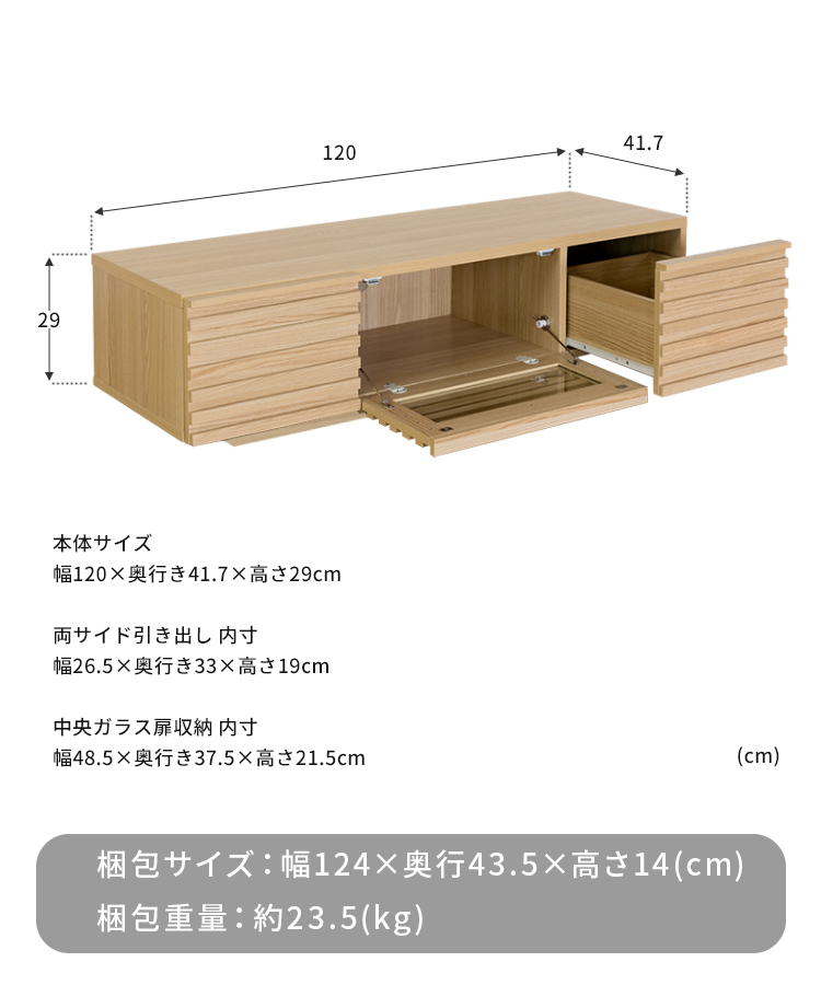 ★すっきりみせる直線的デザイン★ テレビボード 幅120cm 木製 テレビ台 ロータイプ テレビボード 引き出し 収納 リビングボード