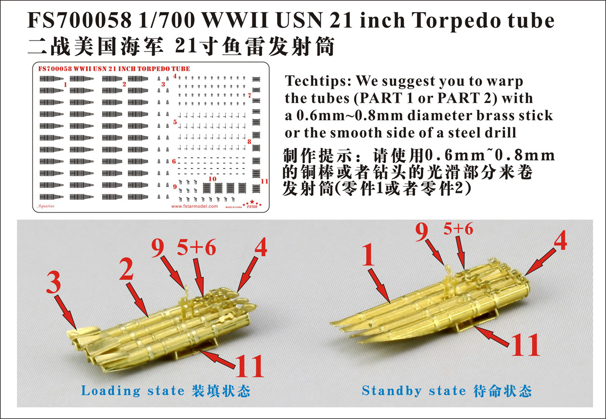 1/700 WWII アメリカ海軍 艦艇用21インチ魚雷発射管 エッチングパーツ |