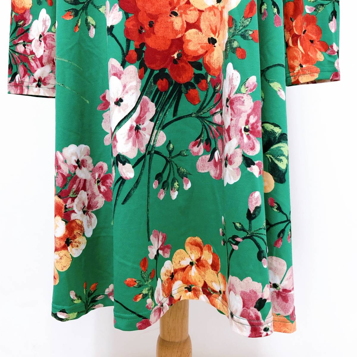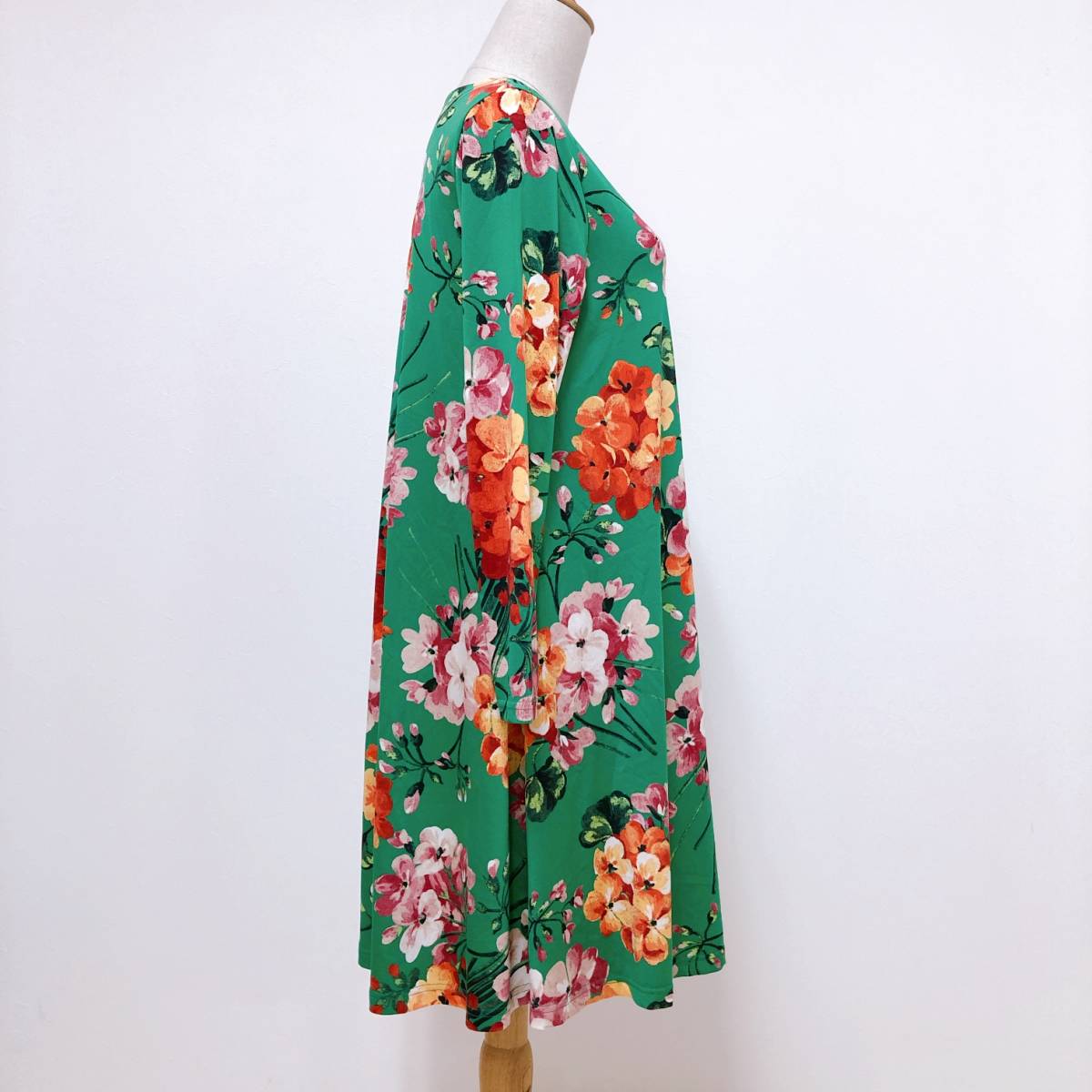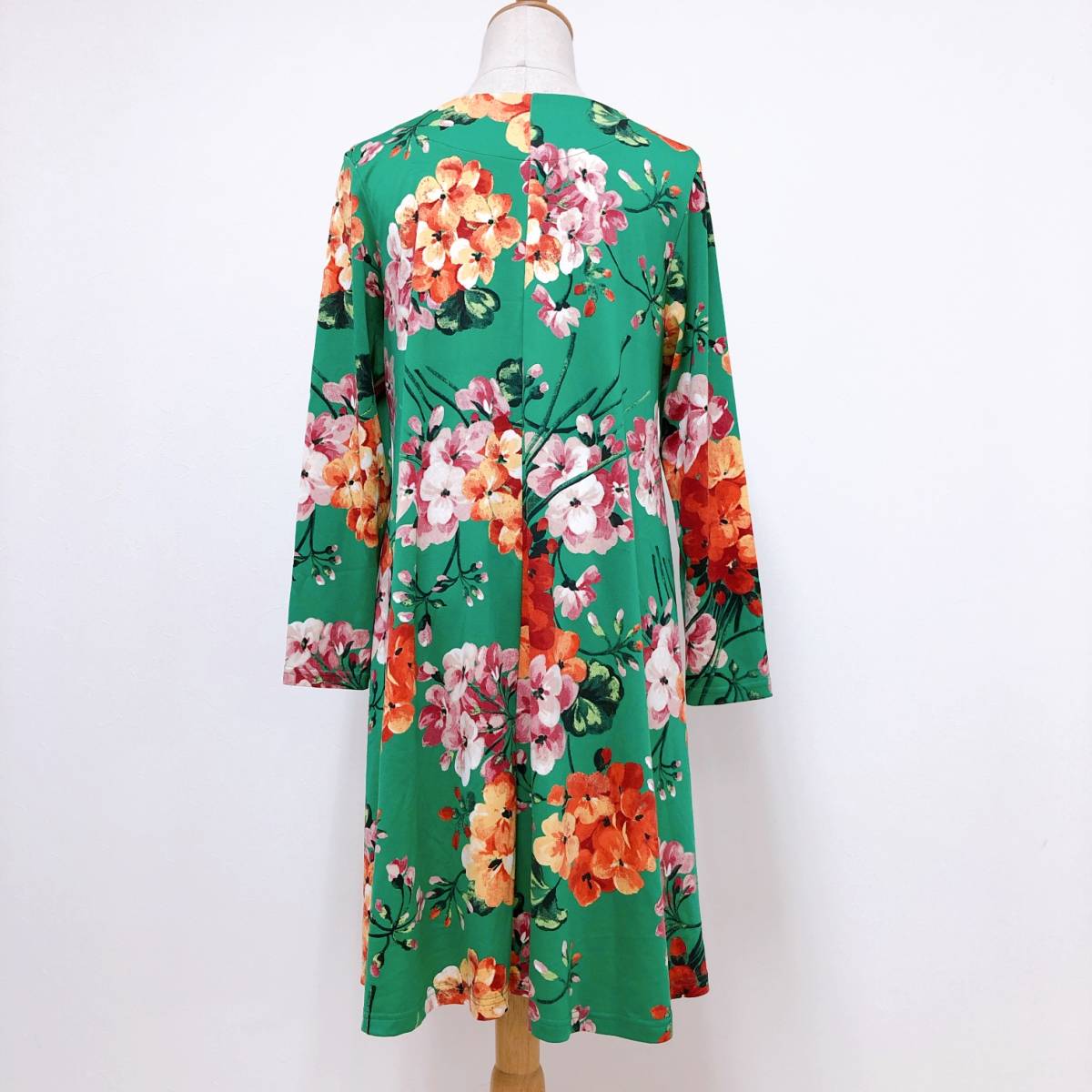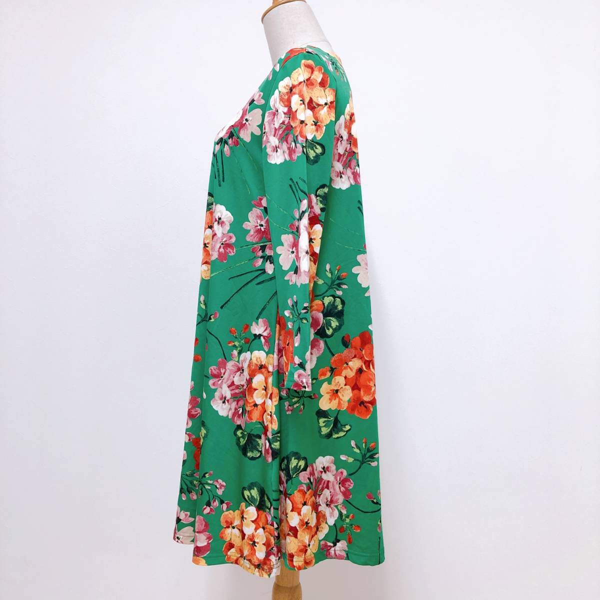 k1755 美品 LA MONET TOKYO ラモネ チュニック 長袖 緑 花柄 エレガント 上品 華やか レトロチック お洒落 フェミニンフローラルスタイル
