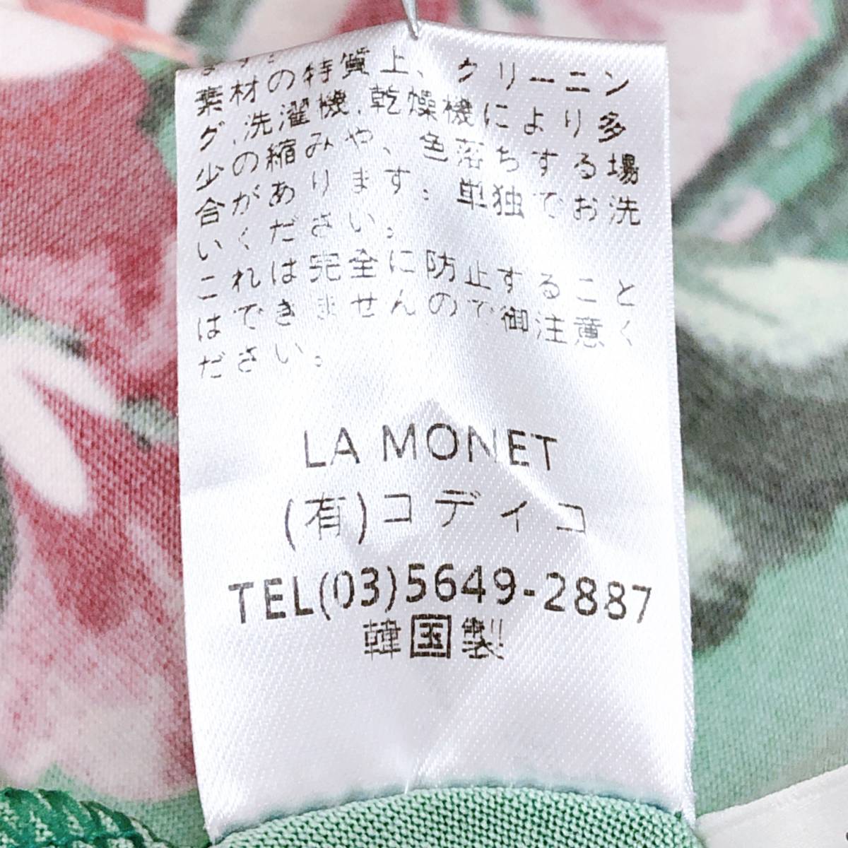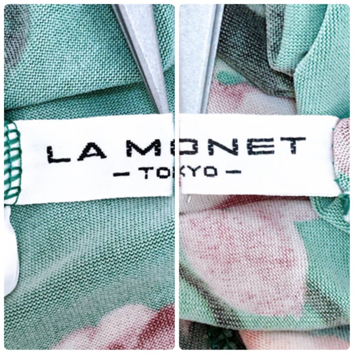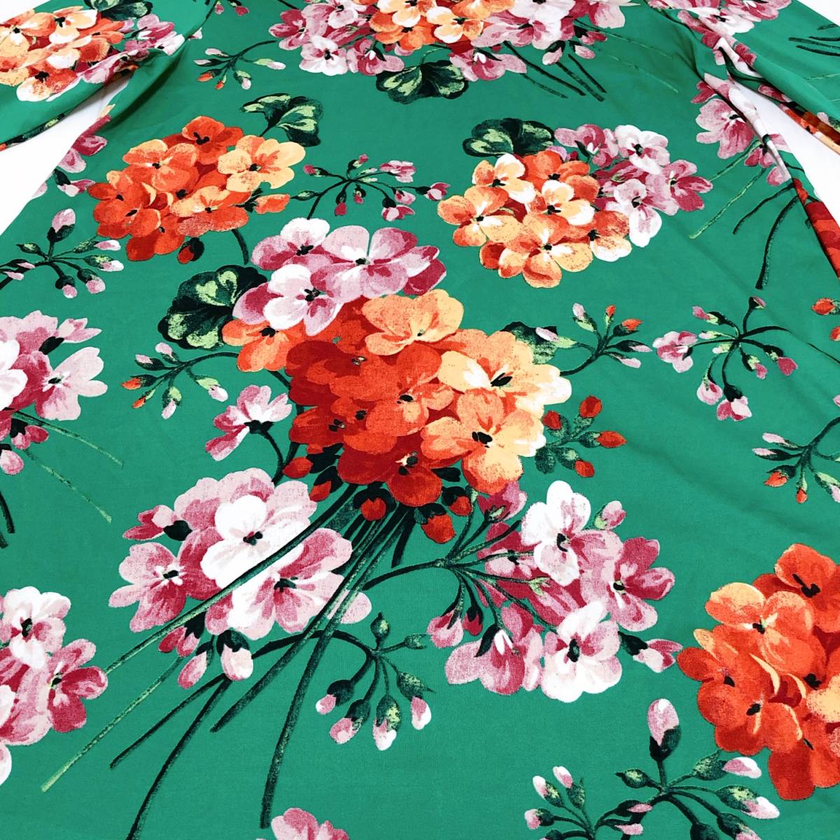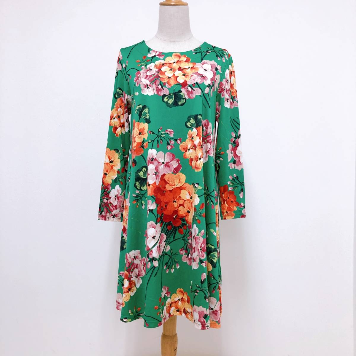 k1755 美品 LA MONET TOKYO ラモネ チュニック 長袖 緑 花柄 エレガント 上品 華やか レトロチック お洒落 フェミニンフローラルスタイル