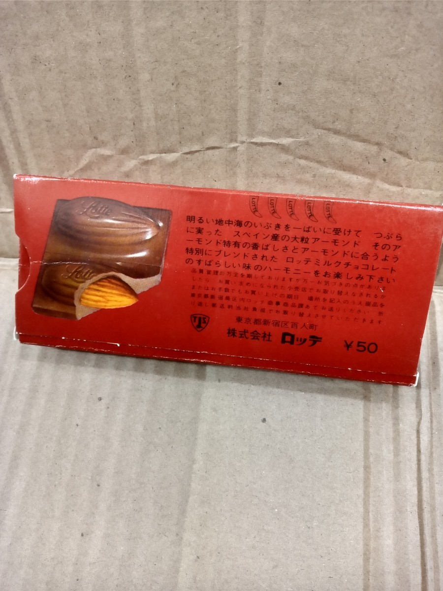 1960年代(後半と思われる)の、ロッテ、アーモンド ミルク チョコレートのパッケージです。空箱、空き箱です。