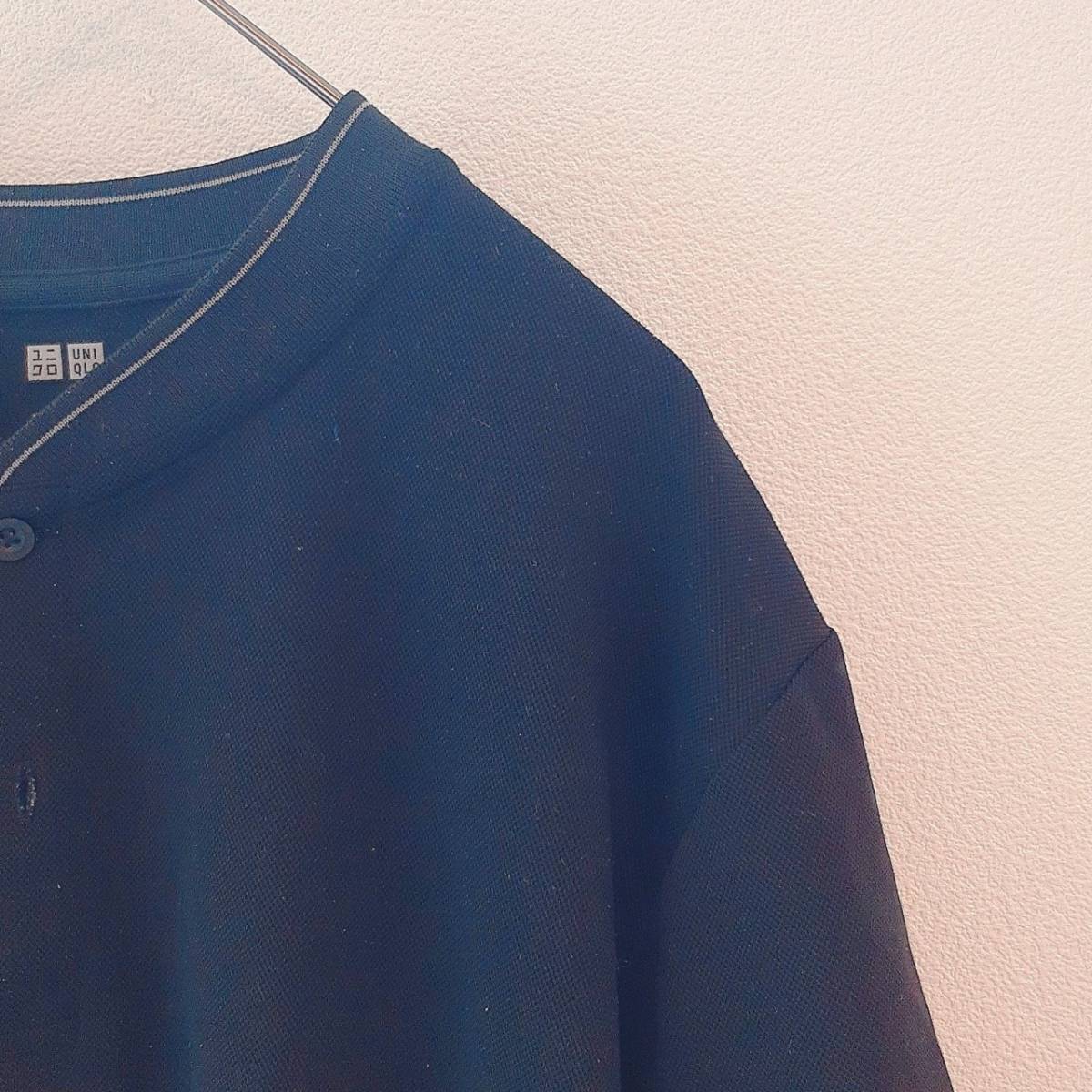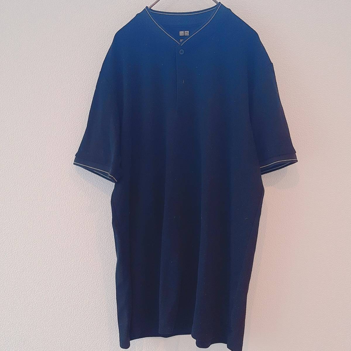 UNIQLO ユニクロ トップス ポロシャツ カラーなし ライン入り 黒 XL メンズ |