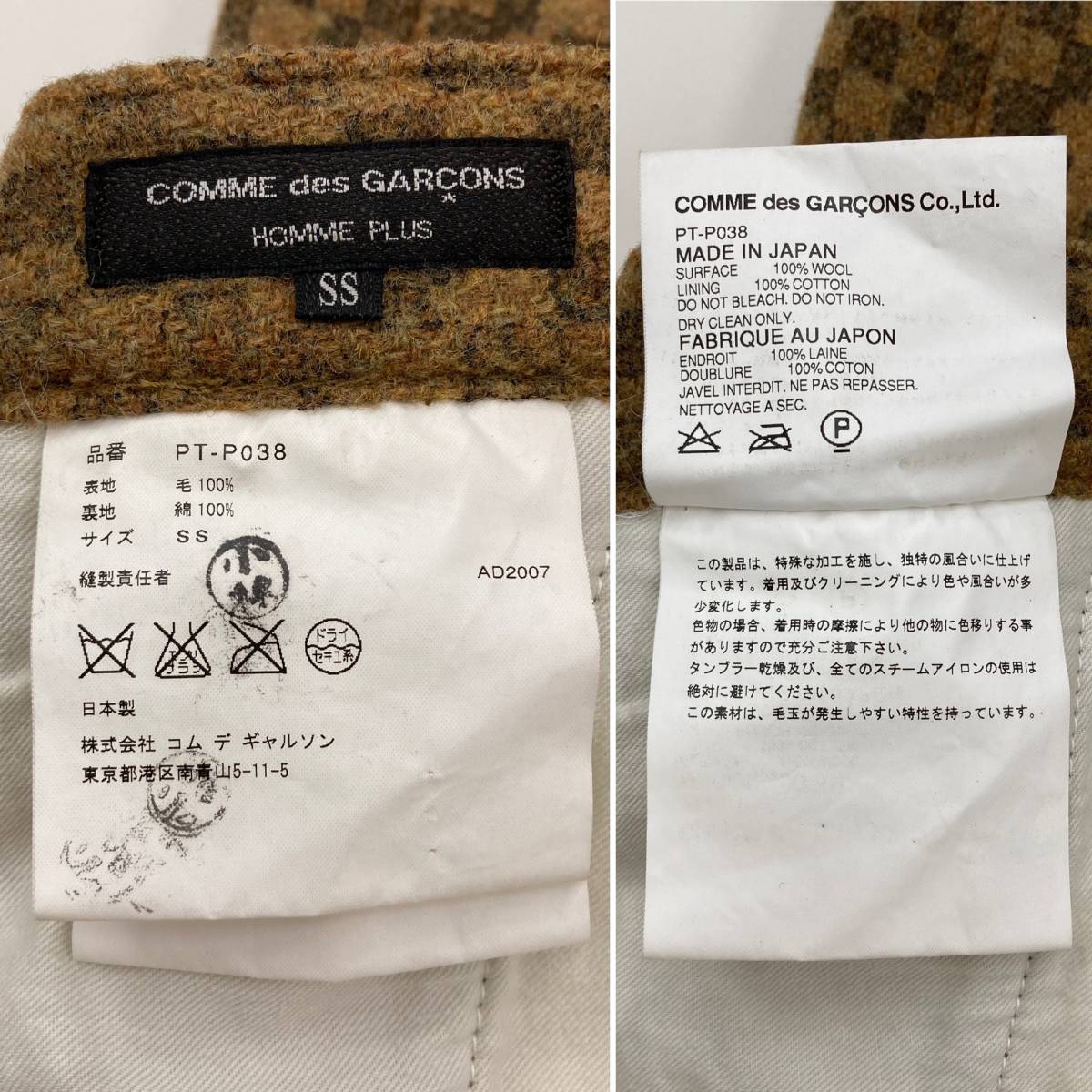 AD2007 コムデギャルソンオムプリュス チェッカー 総柄 プリント ウール スラックス SSサイズ HOMME PLUS パンツ archive 3120183